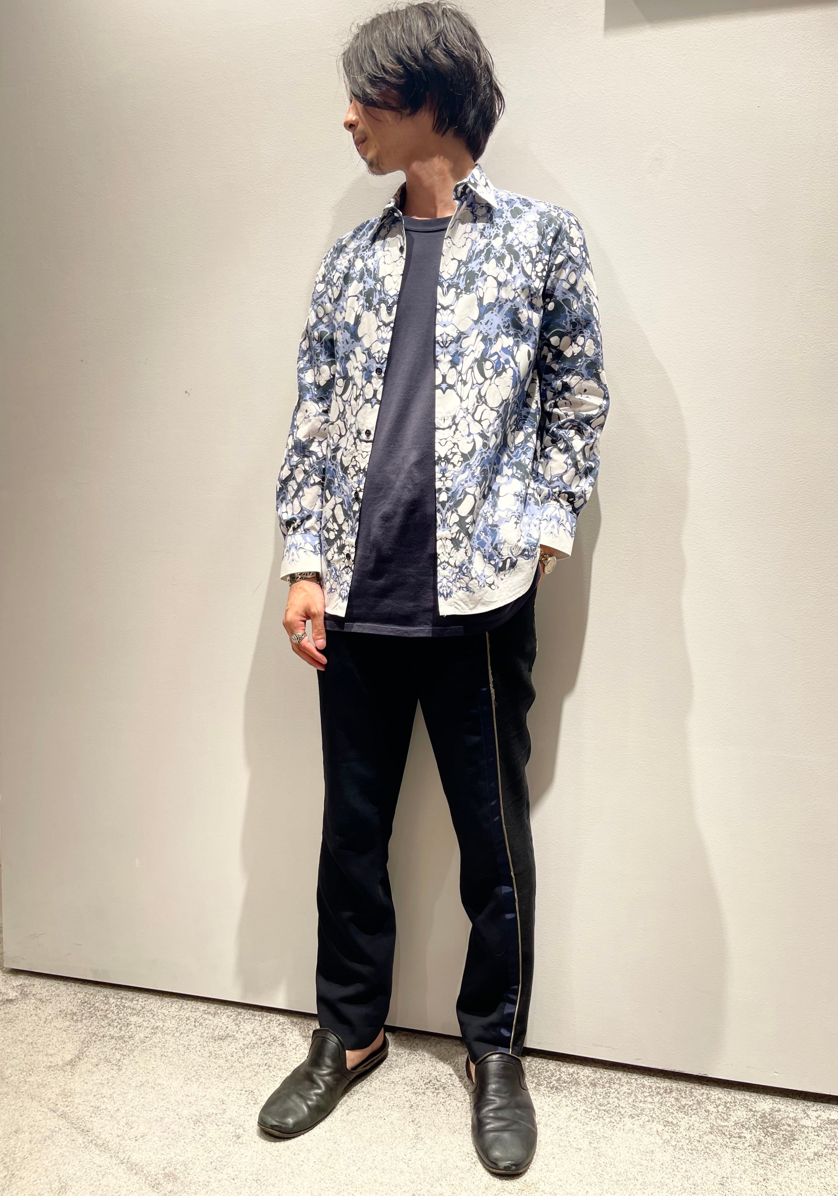 シンメトリーのマーブル柄が印象的なシャツをご紹介します。