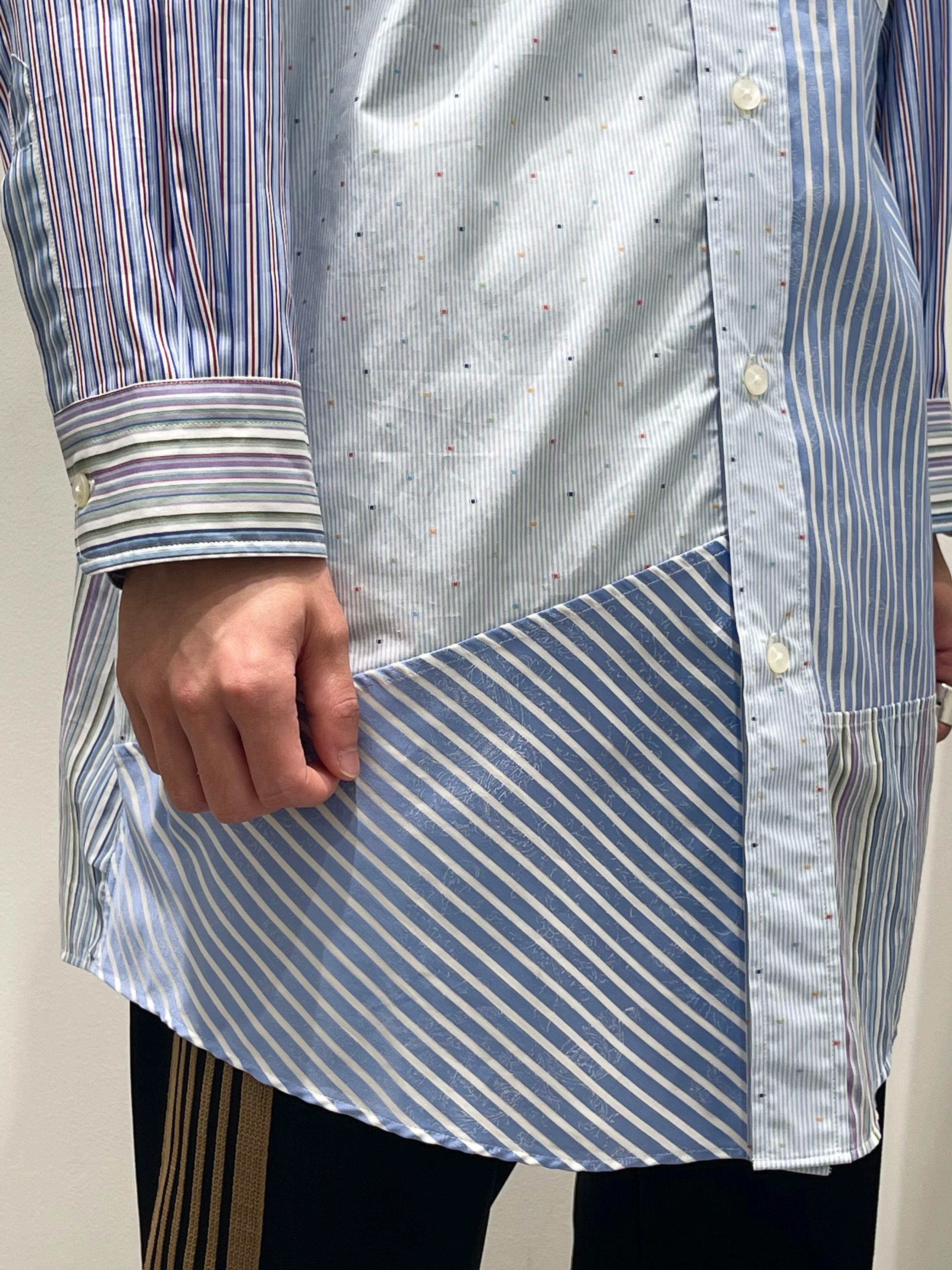 エトロより、涼しげなサックスブルーベースの切り替えがユニークなデザインシャツをご紹介致します。