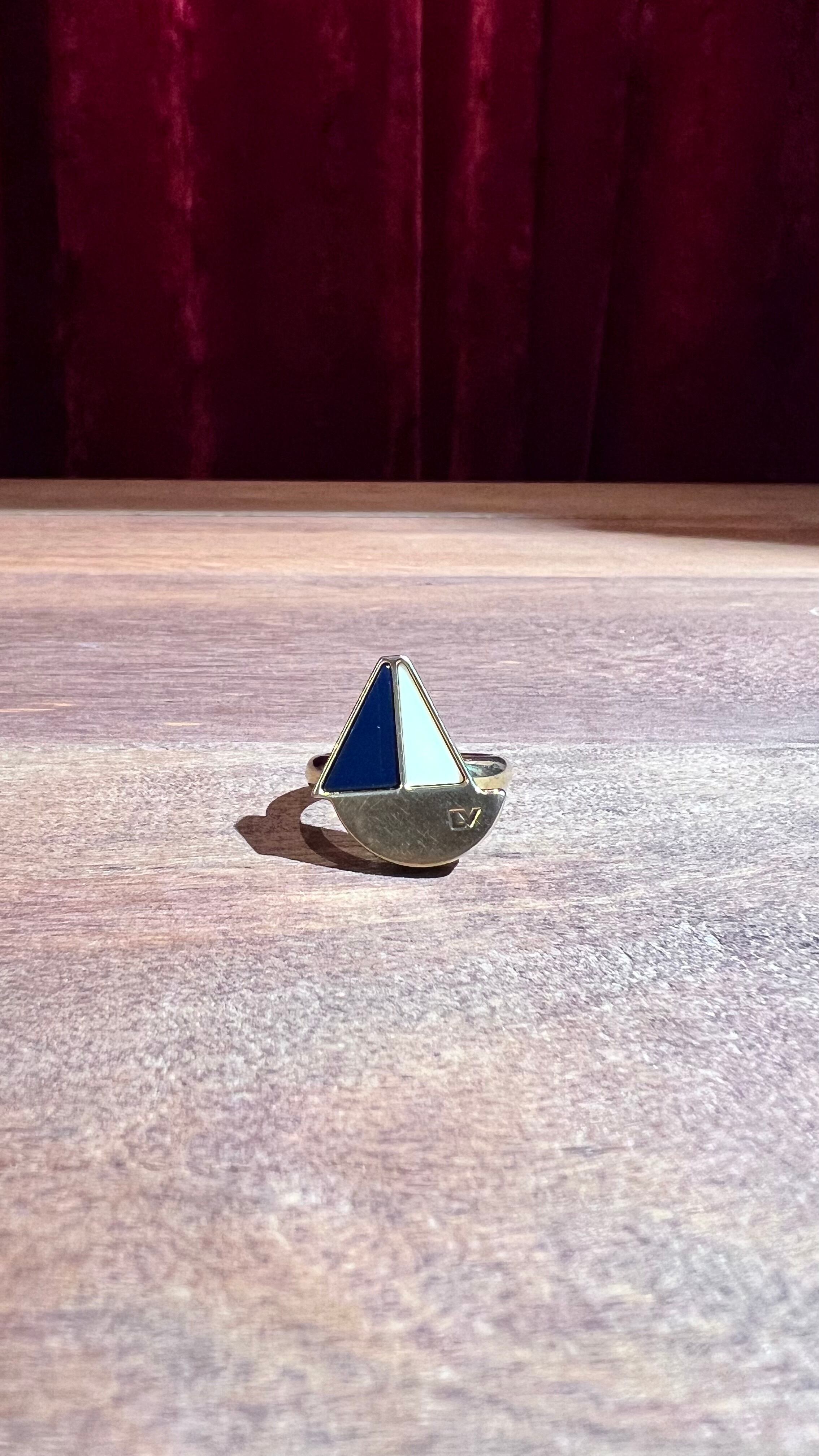 コンビネーションカラーにヨットのロゴ。その中にLVのロゴが刻印されたデザイン。
