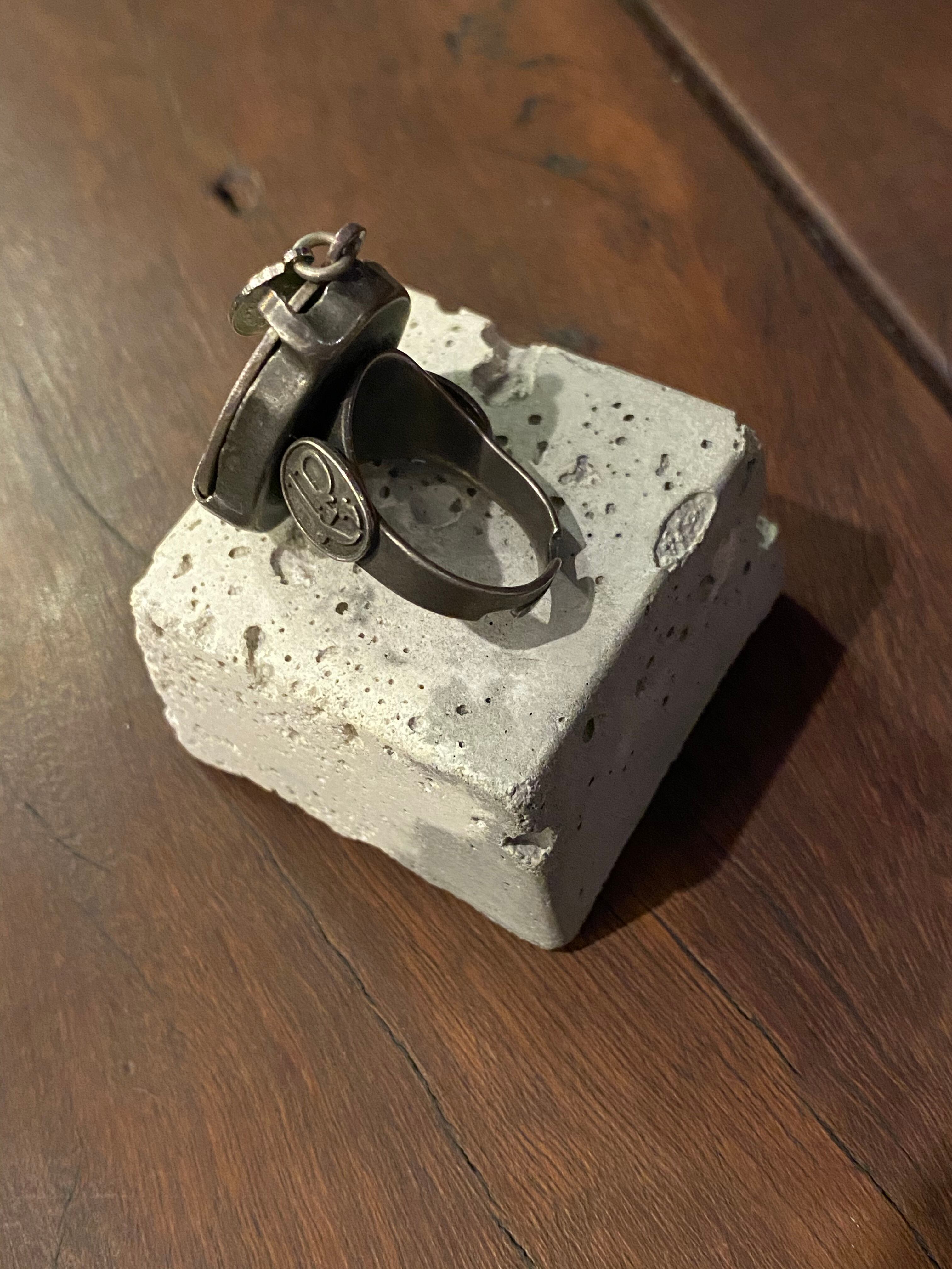 宗教的なモチーフはタブーとされがちですが、あえて上からモスグリーンの樹脂コーティングをしポップに仕上げたファニーなニュアンスは、さすがのGAULTIER。マニアには堪らない一品。