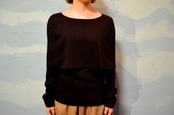 余分なものを削ぎ落し、女性らしさを感じるパーツを存分に引き出しシンプルながら品のあるマルジェラらしいデザインのトップス。デコルテが美しく、丸みのある滑らかなショルダーライン・袖はタイトな細みで漆黒の退廃的かつ禁欲的なムードが女性の柔らかさの中にある強さを表現しているようです。