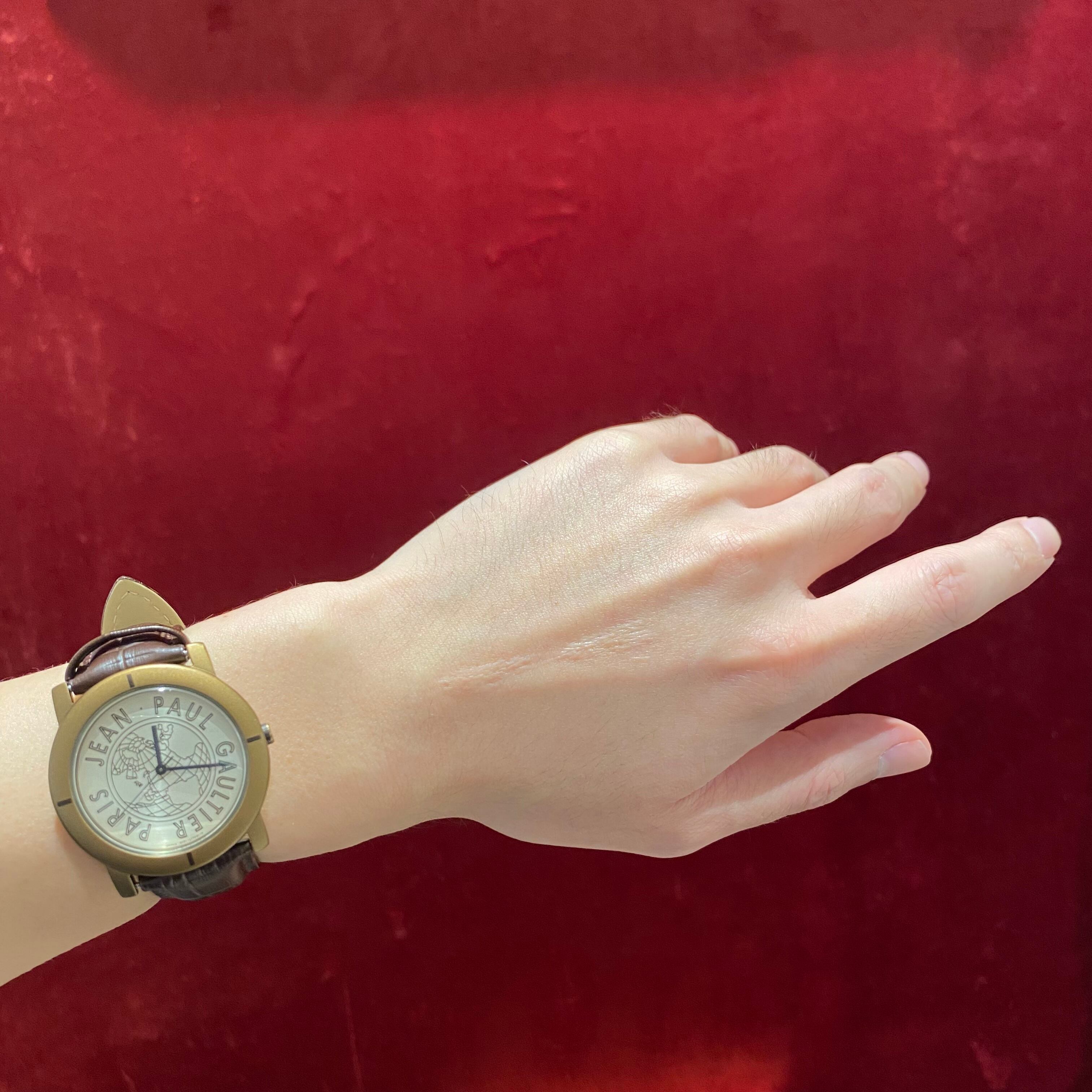 マットな質感のゴールドーフェイスにゴルチエらしいフェイスに地球が描かれた目を惹かれる時計をご紹介します。