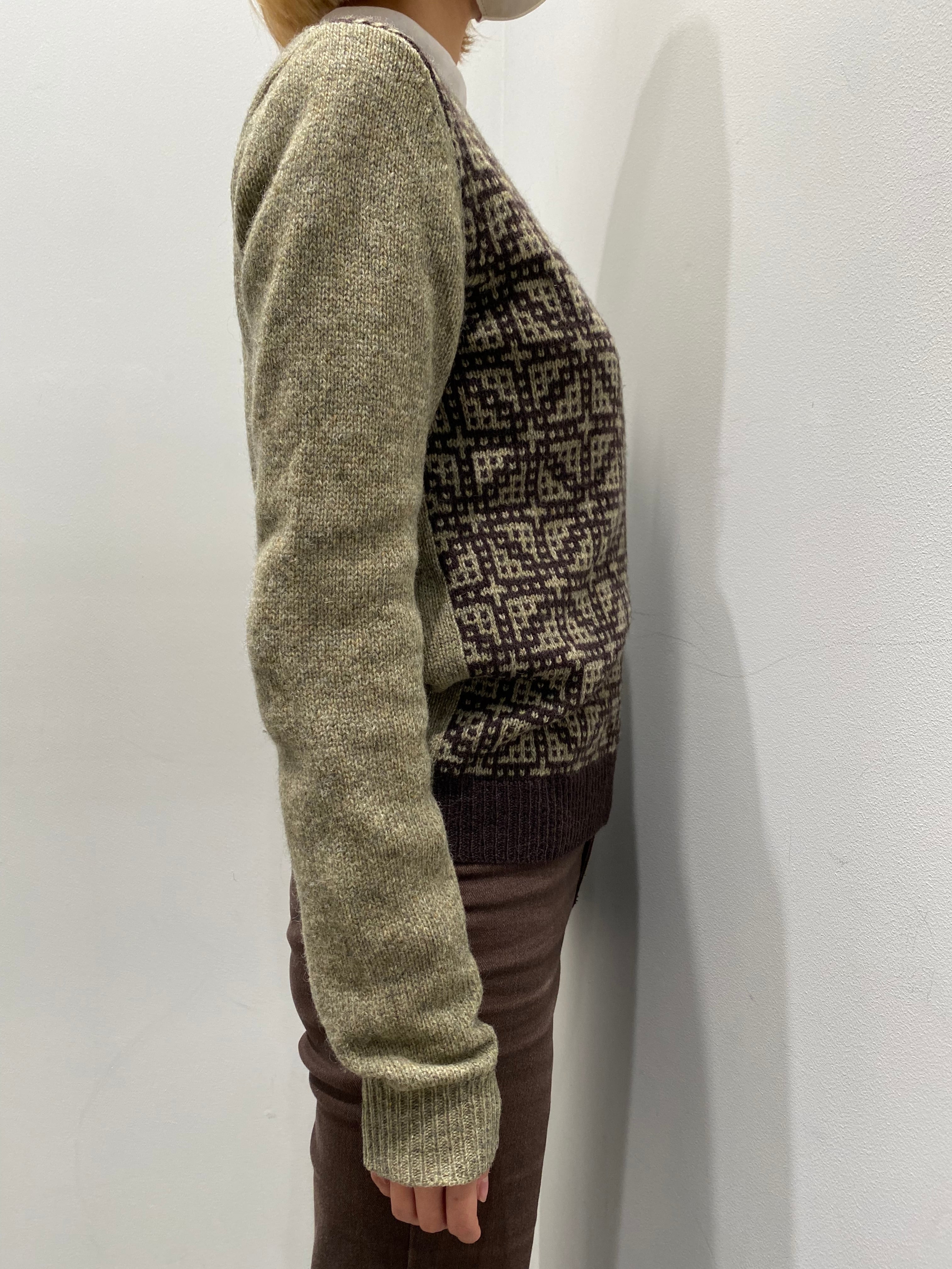 幾何学模様とウールの素材感がマッチし、個性が溢れるこちらのカーディガン。
