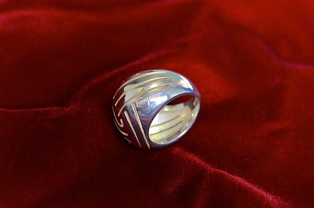 立体感のあるボリューミーなルックスが愛らしい、Salvatore Ferragamoのリング。アート作品のように、ミステリアスに曲線を描き多数の歪んだ線のようなデザインが彫られています。重ね付け不要な、かなりのインパクトを放つボリューム感はハイセンスでまさに圧巻の一言。vintageならではの、独特のフェラガモの世界観を味わってみてはいかがでしょうか。