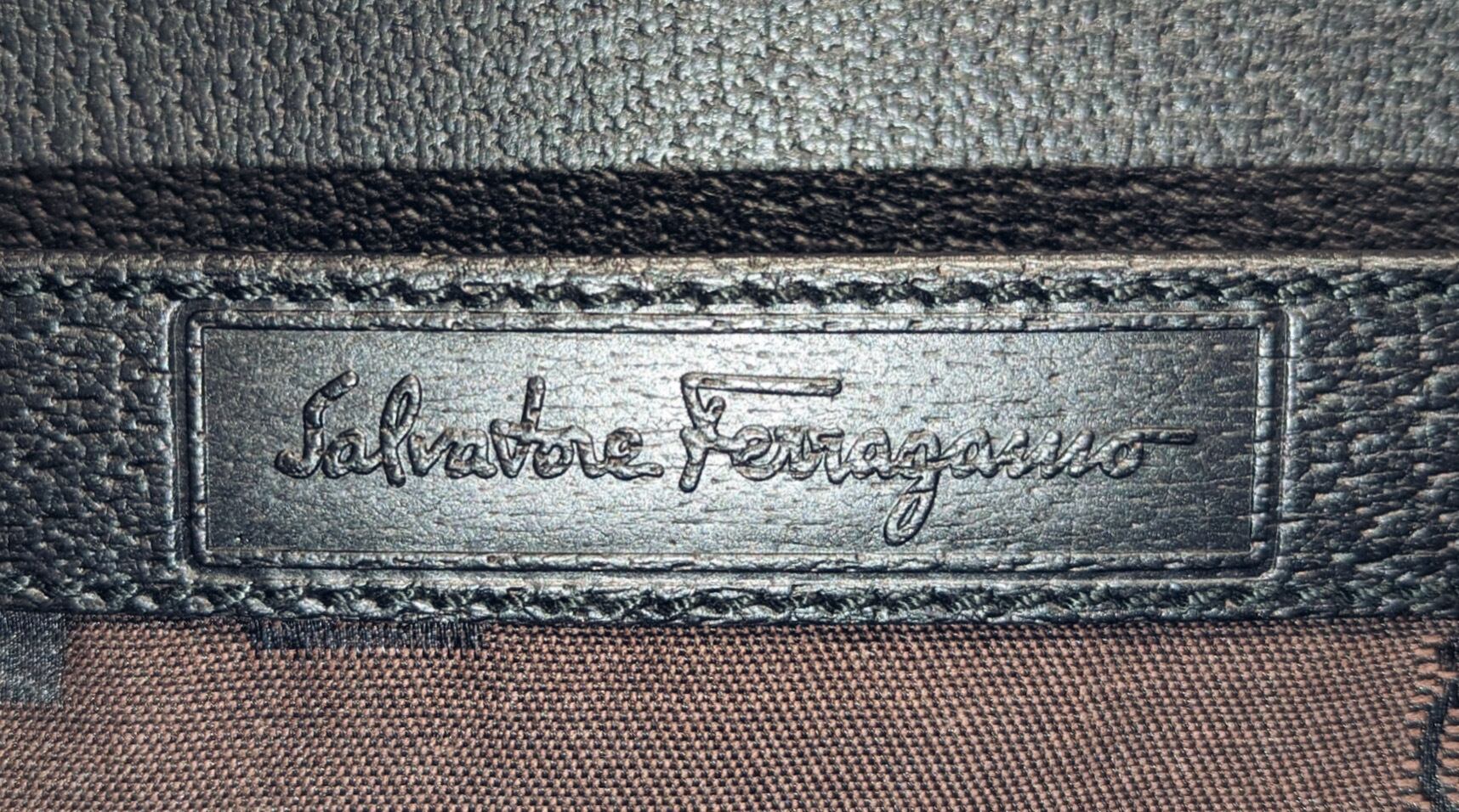 「Salvatore Ferragamo 」 Gangini print leather × polyester design square shoulder bag