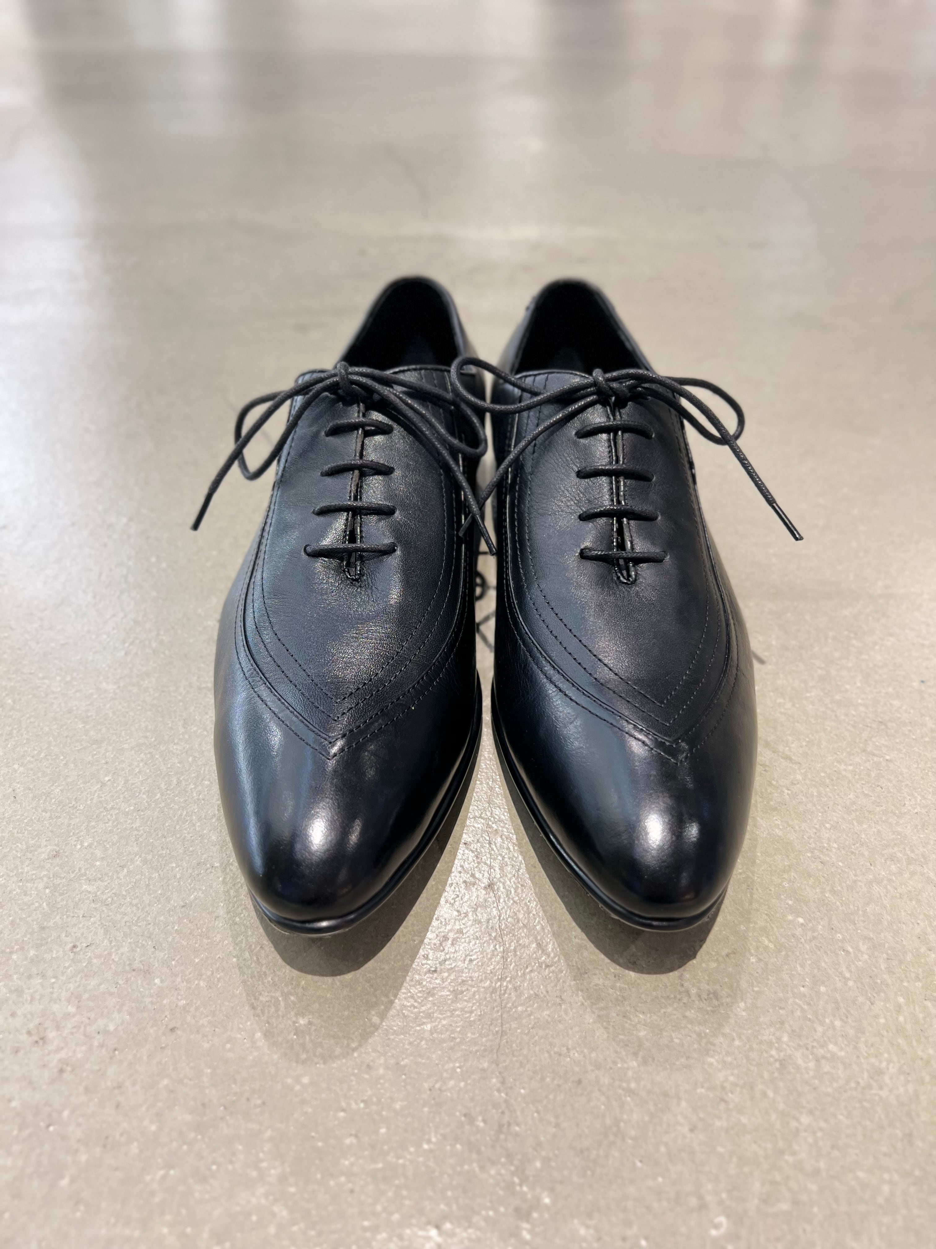 イタリア、ミラノのラグジュアリーブランド「ベルサーチェ」より、アッパーにV字のデザインが入ったレザーシューズをご紹介します。