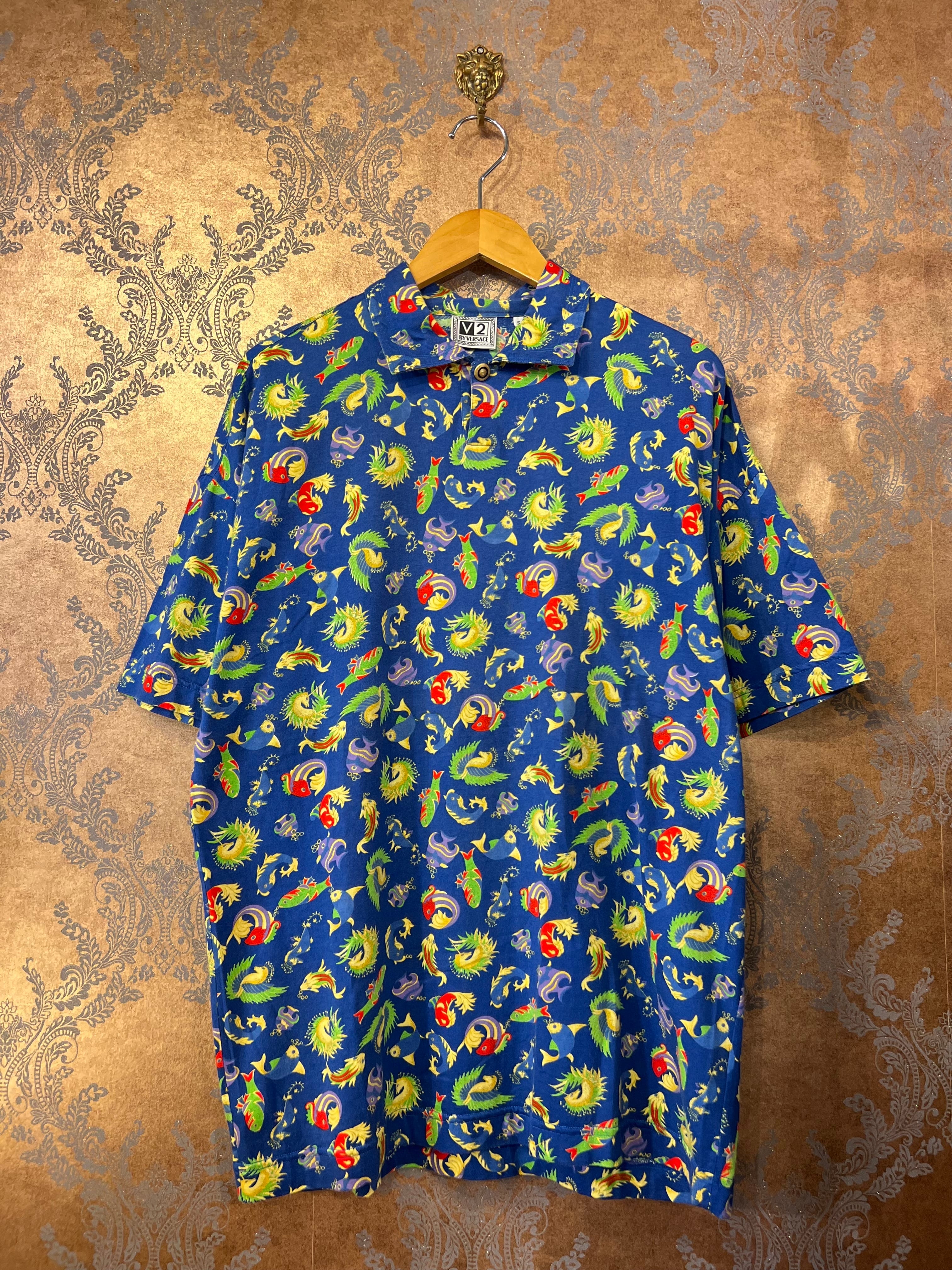 「V2 BY VERSACE」Blue color fish pattern pullover shirt