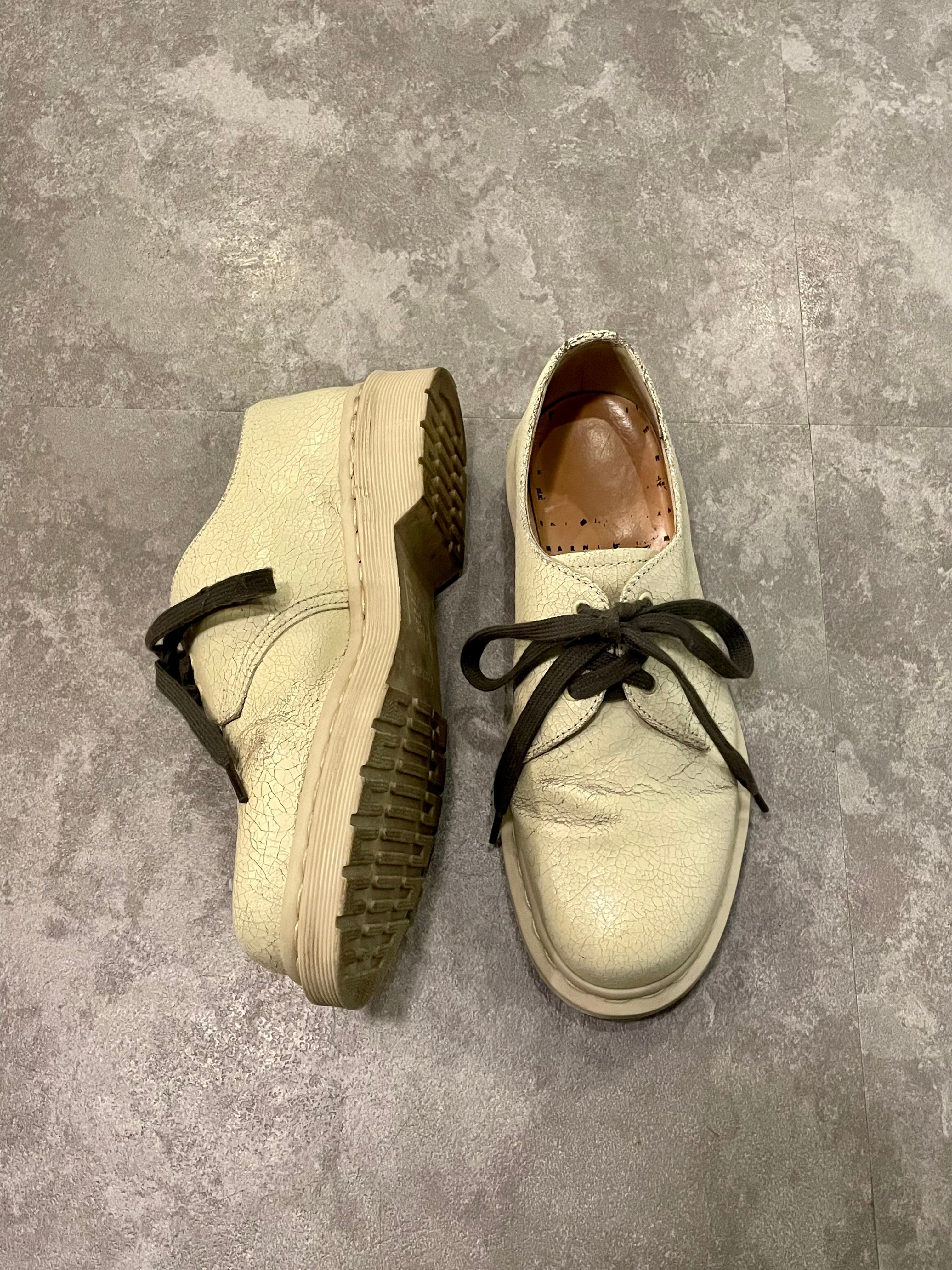 シューズにはヴィンテージ感漂う柔らかめなオフホワイトのクラッシュレザーを使用。