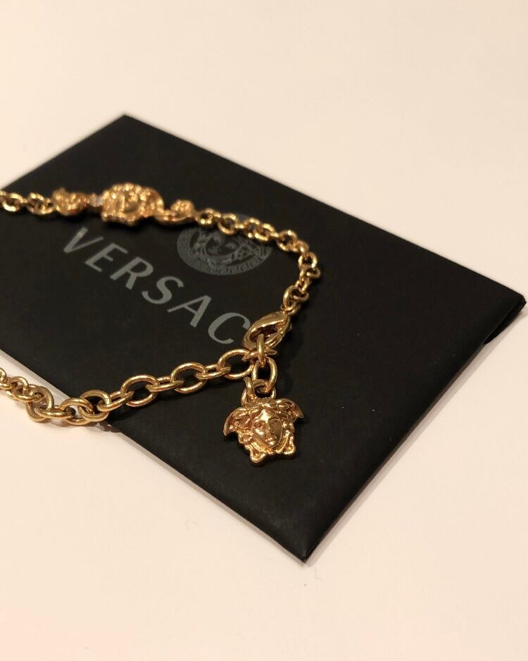 イタリアのミラノに拠点を置く「GIANNI VERSACE」ほヴィルトゥスシリーズより、Vのロゴとメドゥーサが装飾されているゴールドブレスレットのご紹介。