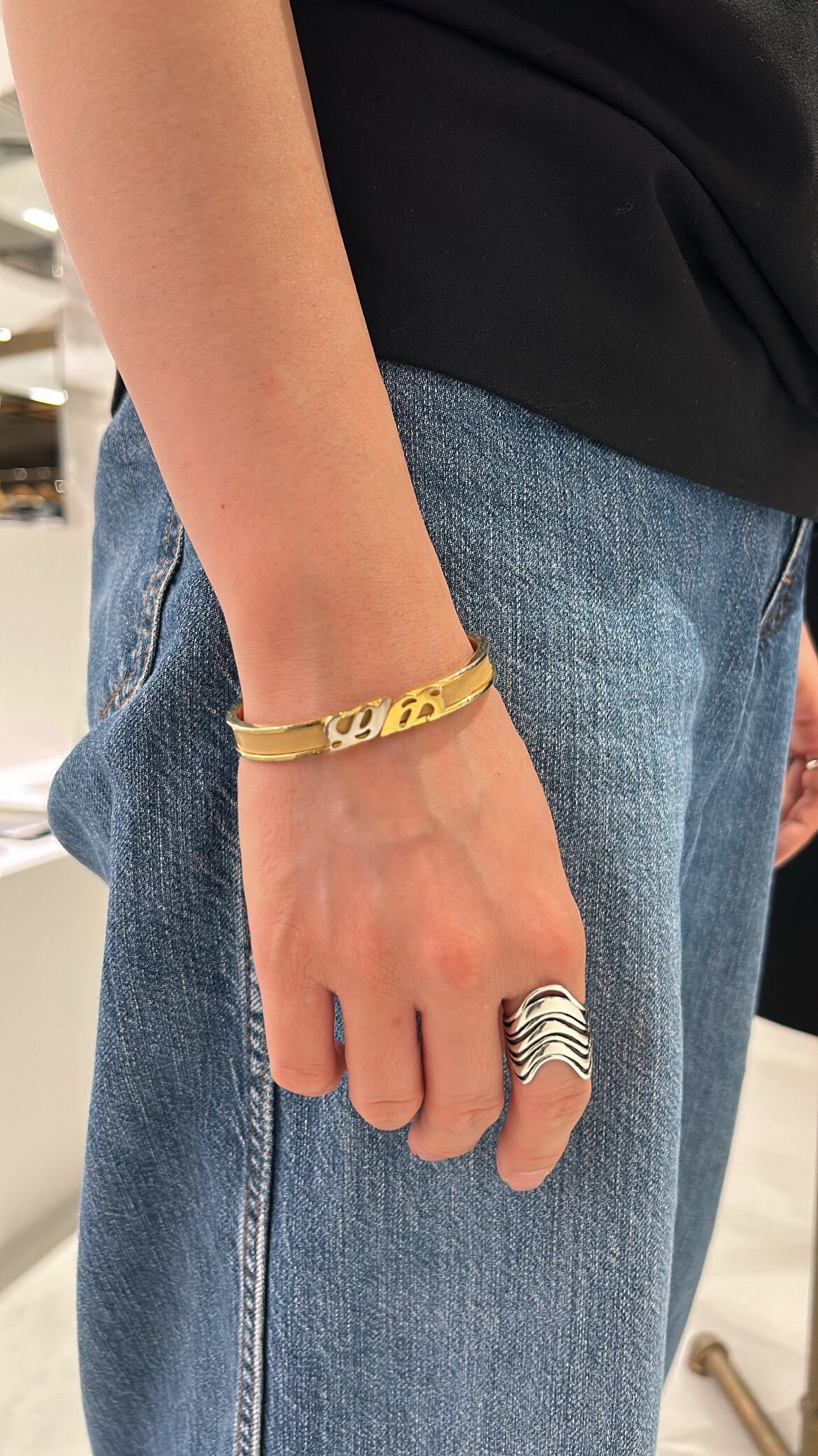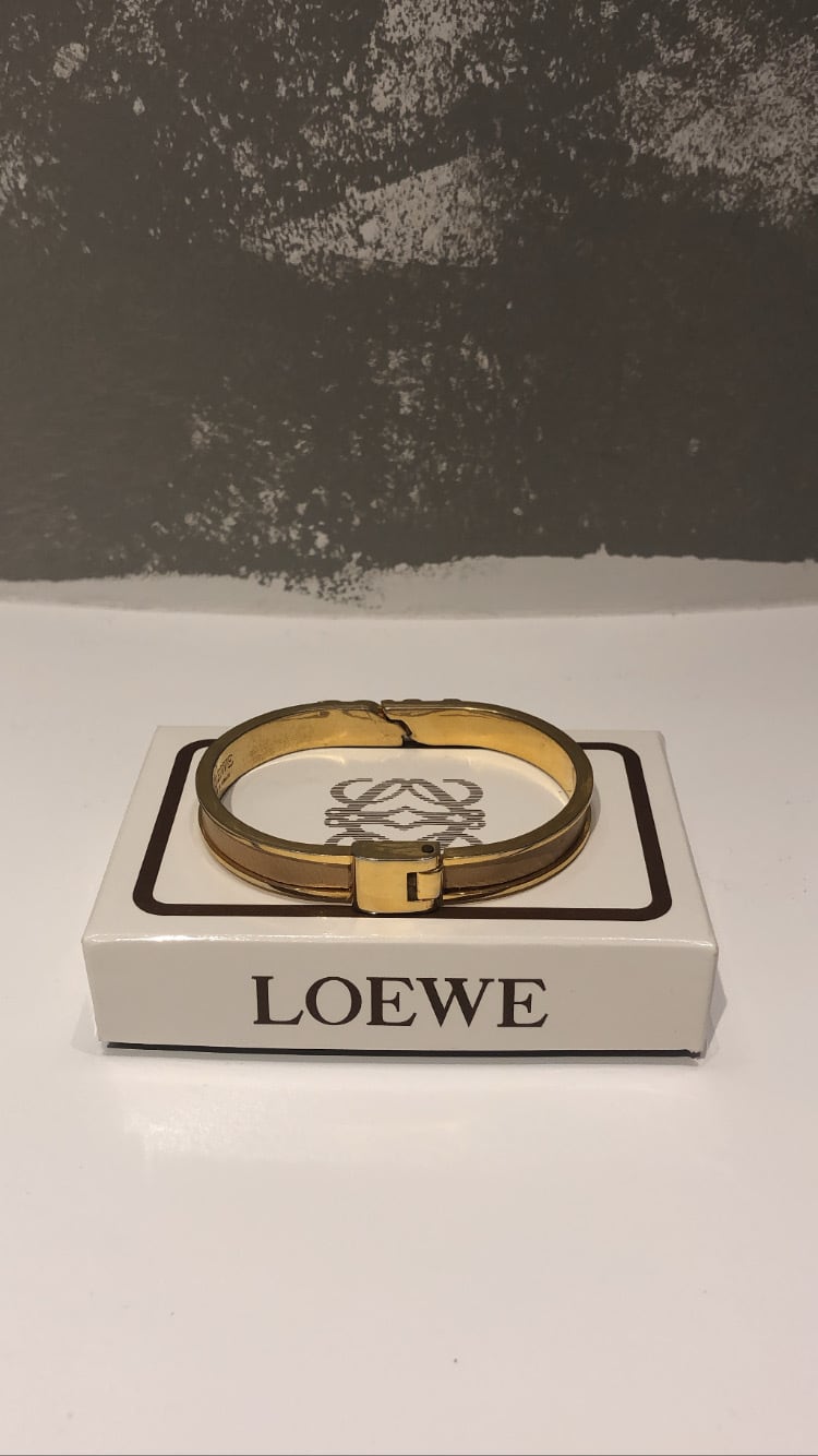 スペイン・マドリードのブランドロエベより、シルバーとゴールドの対の装飾モチーフのブレスレットをご紹介致します。