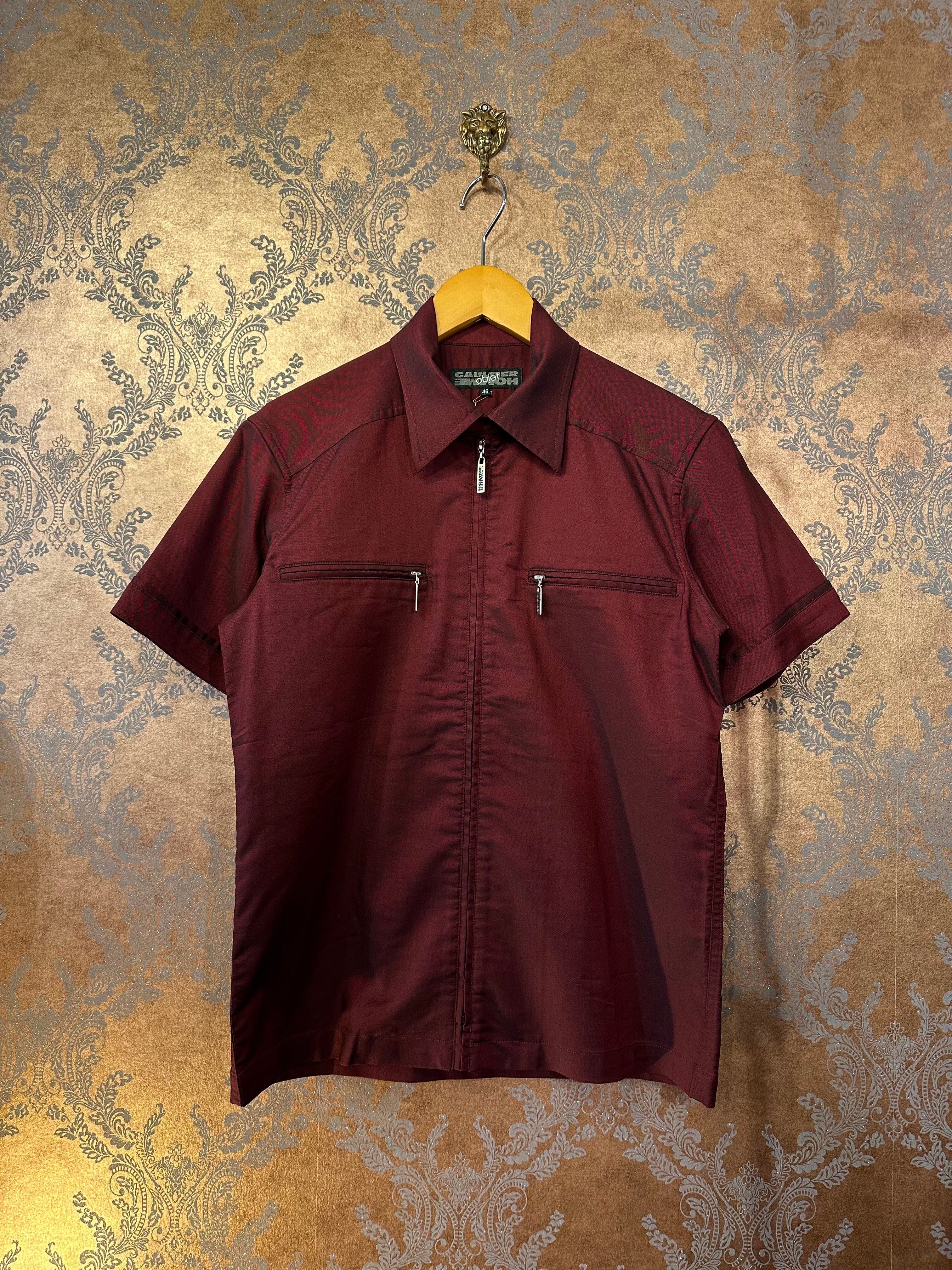 ジャンポールゴルチエより鮮やかな玉虫シャンブレーのショート丈ジップアップシャツをご紹介致します。