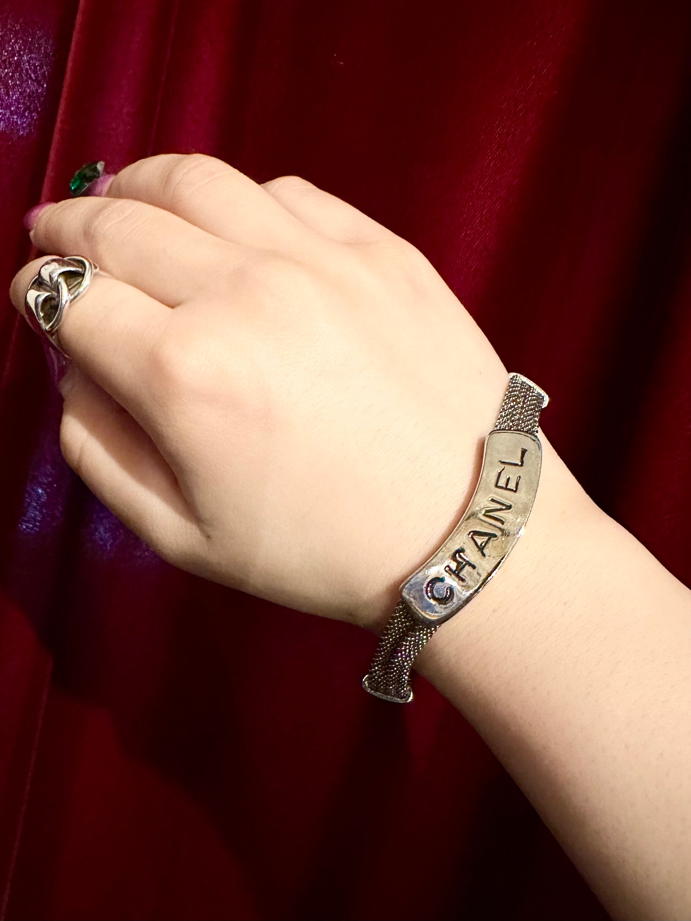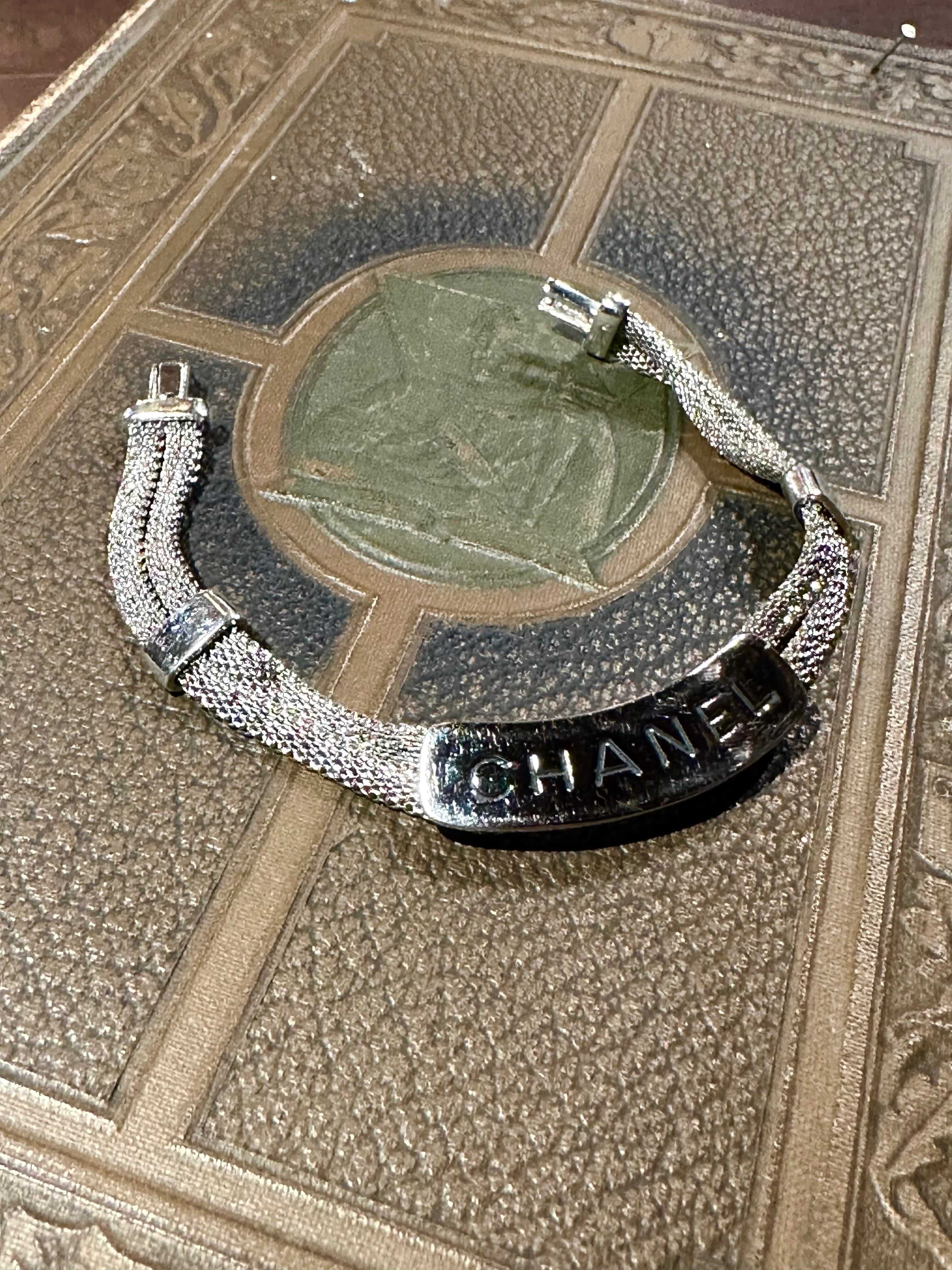 CHANELよりユニセックスでお使いいただける希少なロゴプレートチェーンブレスレットをご紹介いたします。