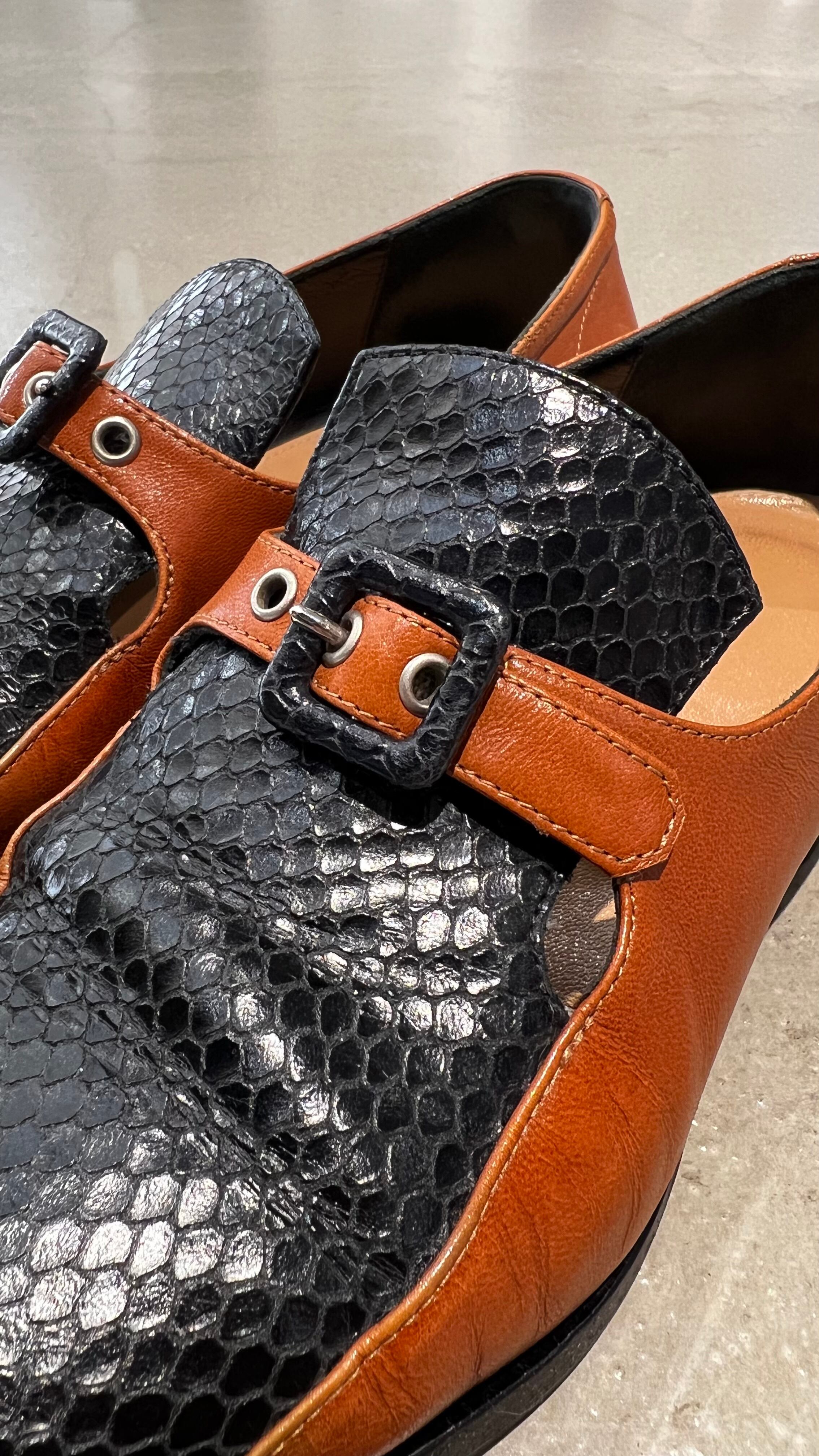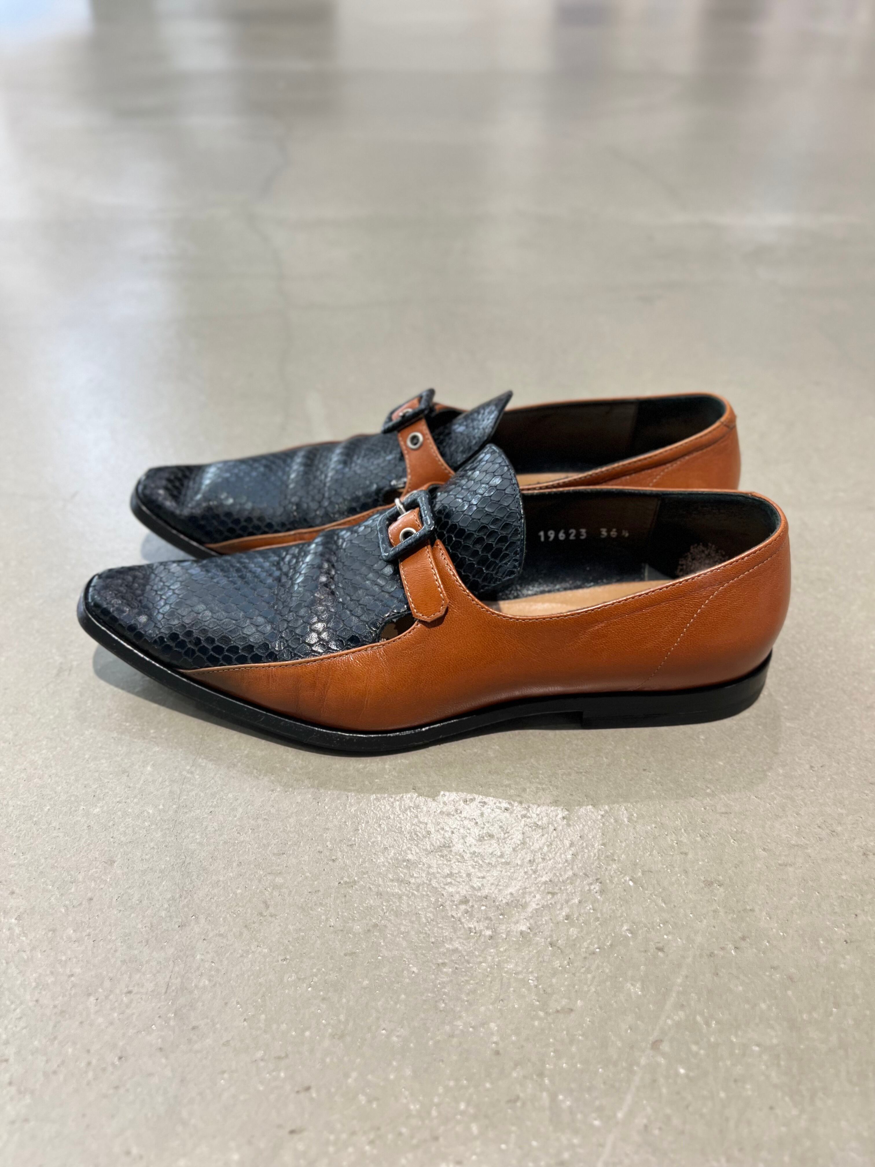 「DRIES VAN NOTEN」camel blown×black embossing leather design monk strap shoes