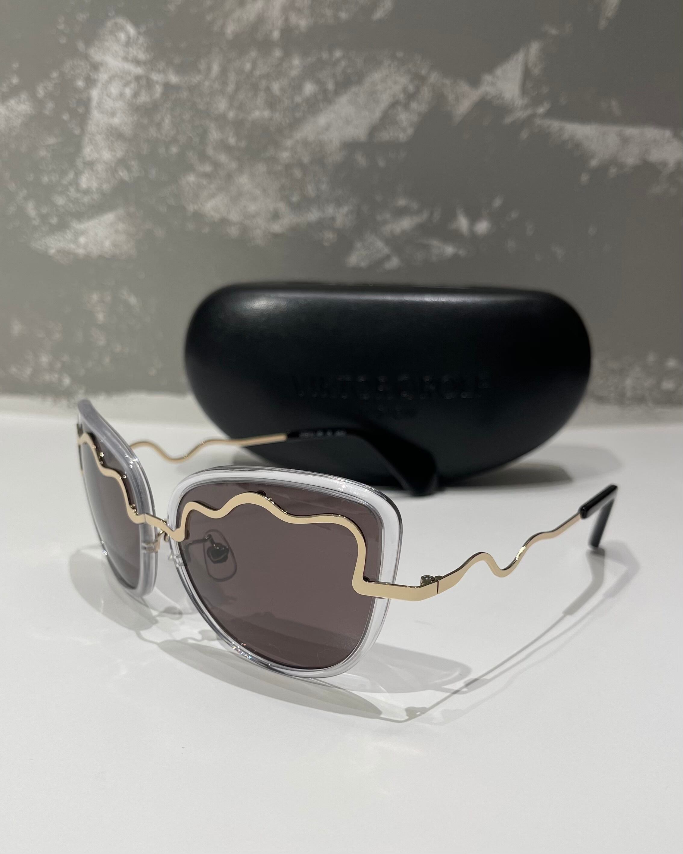 丁番に繋がるようにデザインされたゴールドの波模様はサングラスをかけた時に視界を遮らない位置にしっかりとデザインされており、それだけでも計算された美しいラインを感じることができます。