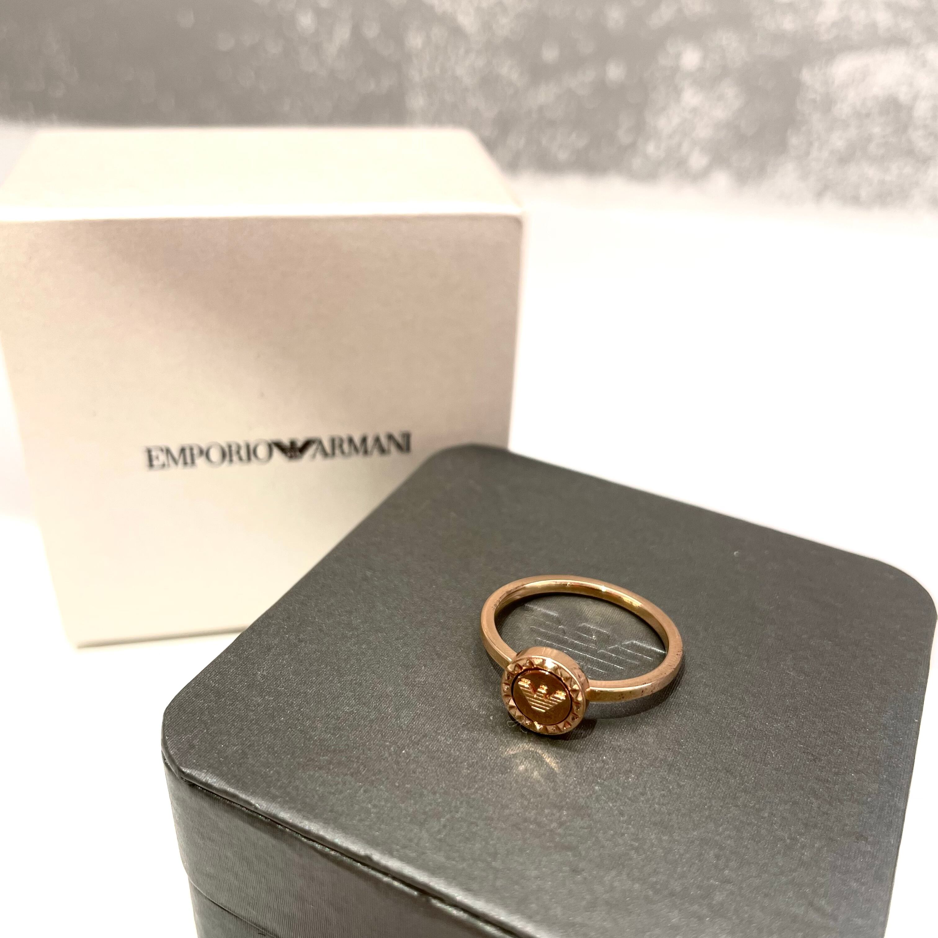 「EMPORIO ARMANI」logo motif design pink gold ring