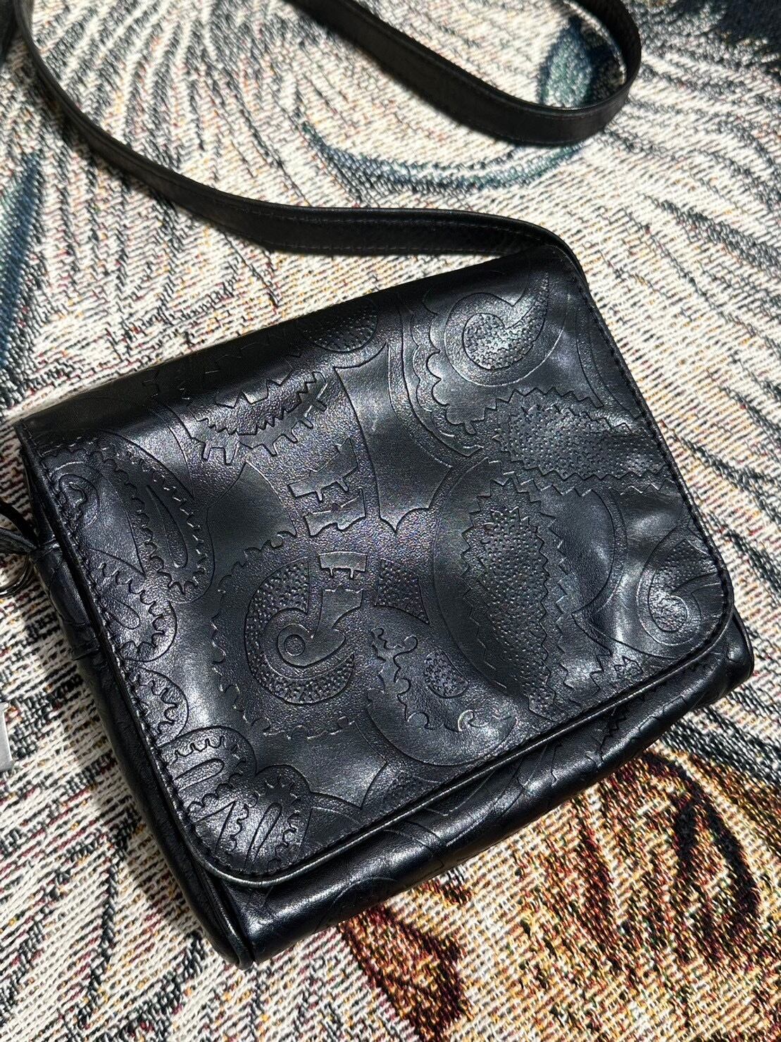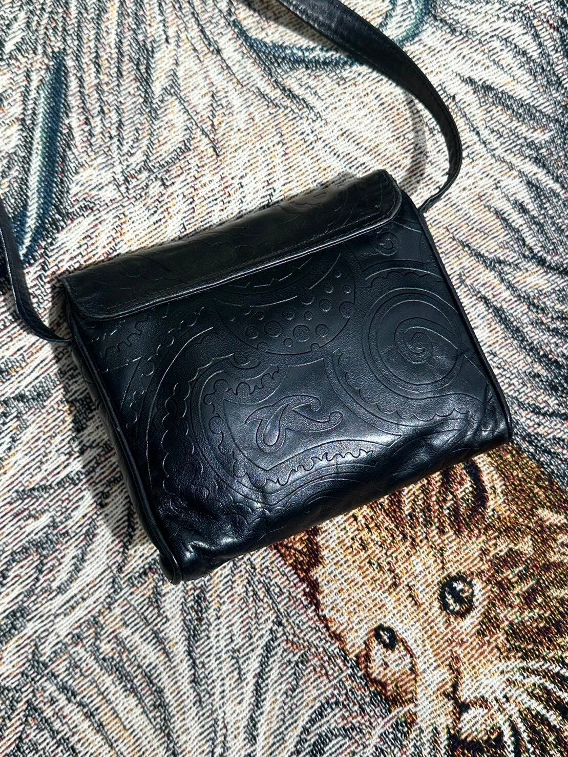 デザインのメインはペイズリーと幾何学模様を織り交ぜた様な総柄の型押しで、サイドにはブランド文字の揺れるチャームが付いており、高級感を演出。 バッグの中はメインポケットと、サブポケットに別れております。