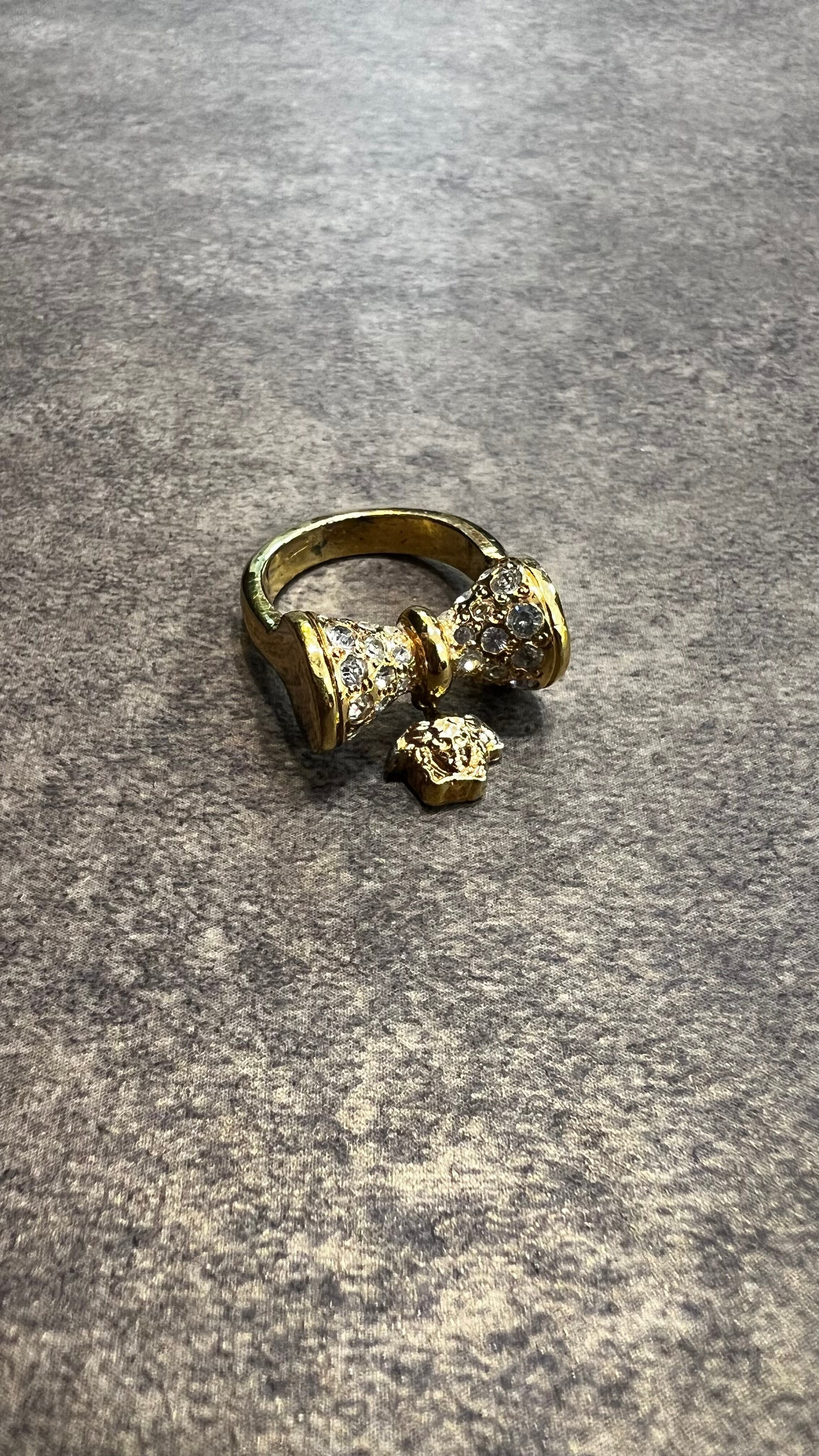 「VERSACE」gold color medusa×rhinestone ribbon motif ring