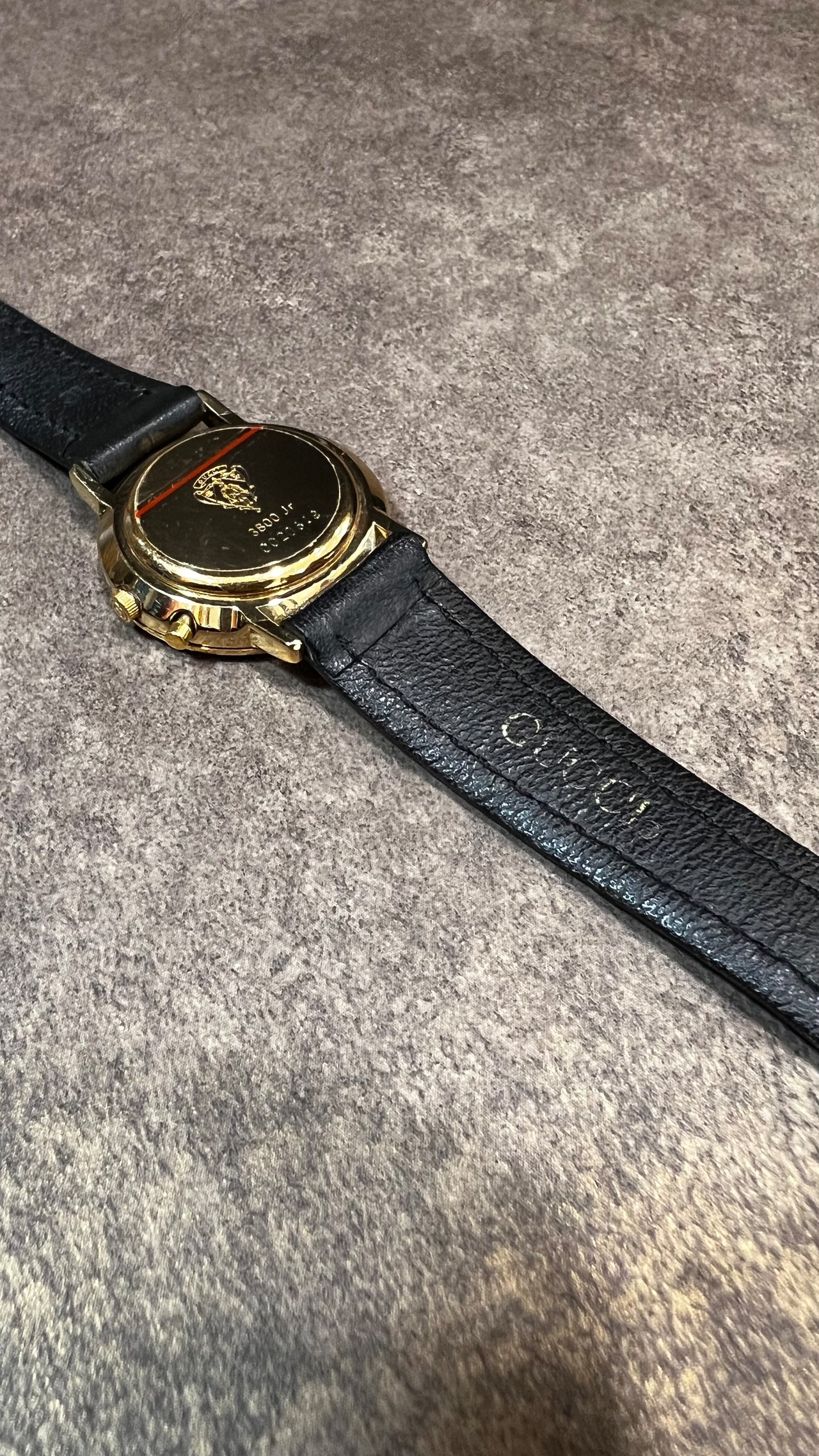 「GUCCI」 black x gold leather belt design watch
