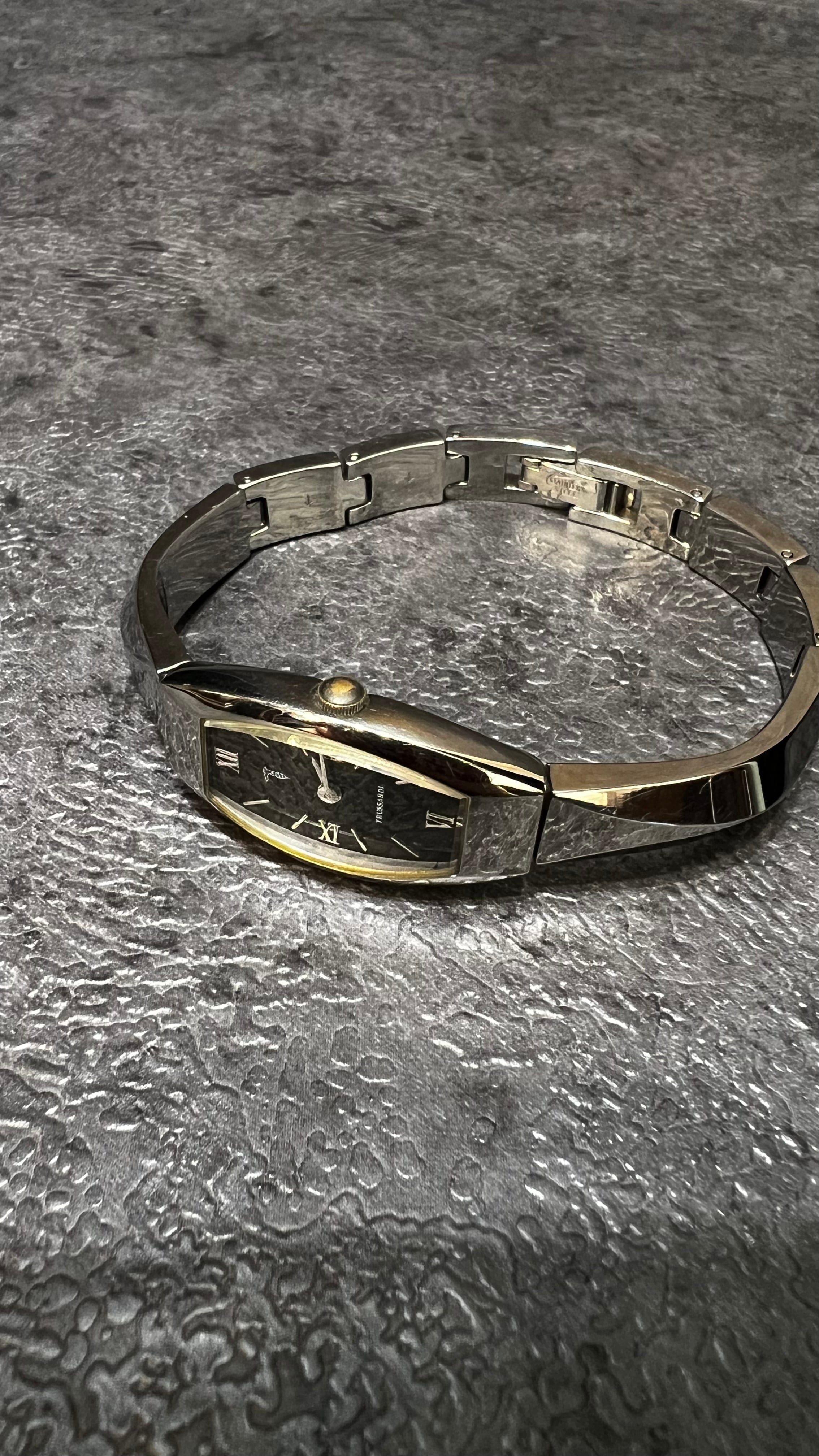 ブレスレット風な細めなベルトひスクエア風ですが、楕円系のスマートなシルエットが美しく、ブラックとの親和性も高いハイセンスなデザイン。