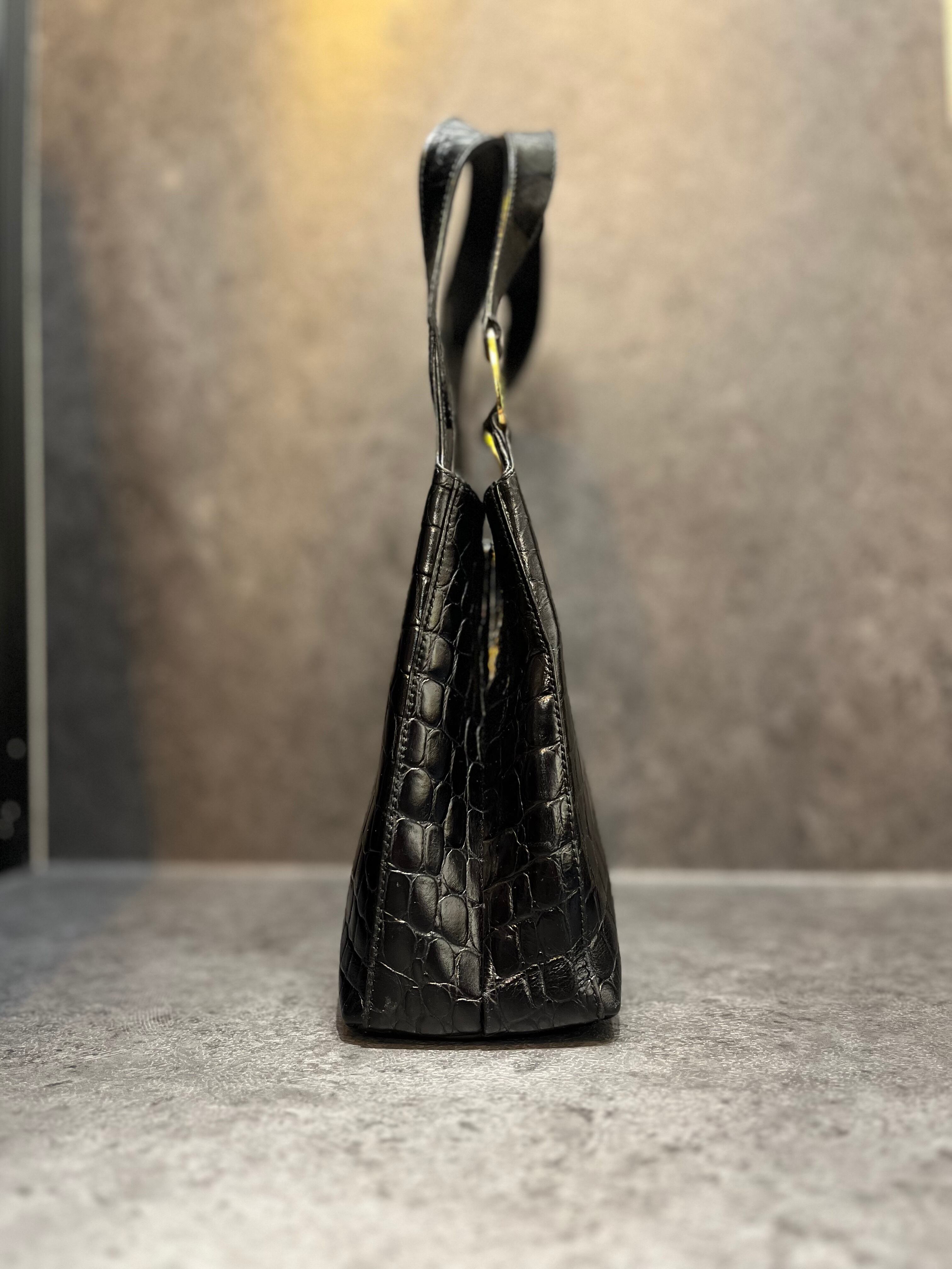 crocodile embossed black leather "vara" motif 2way shoulder bag