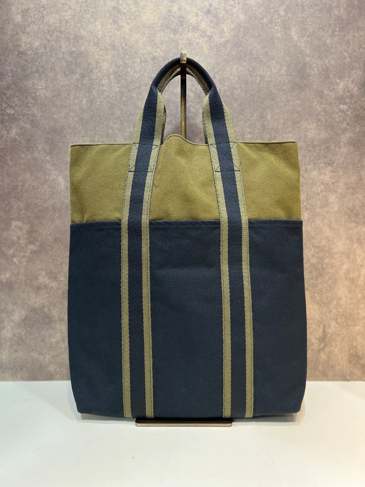 「HERMES」 bi-color design canvas tote-bag