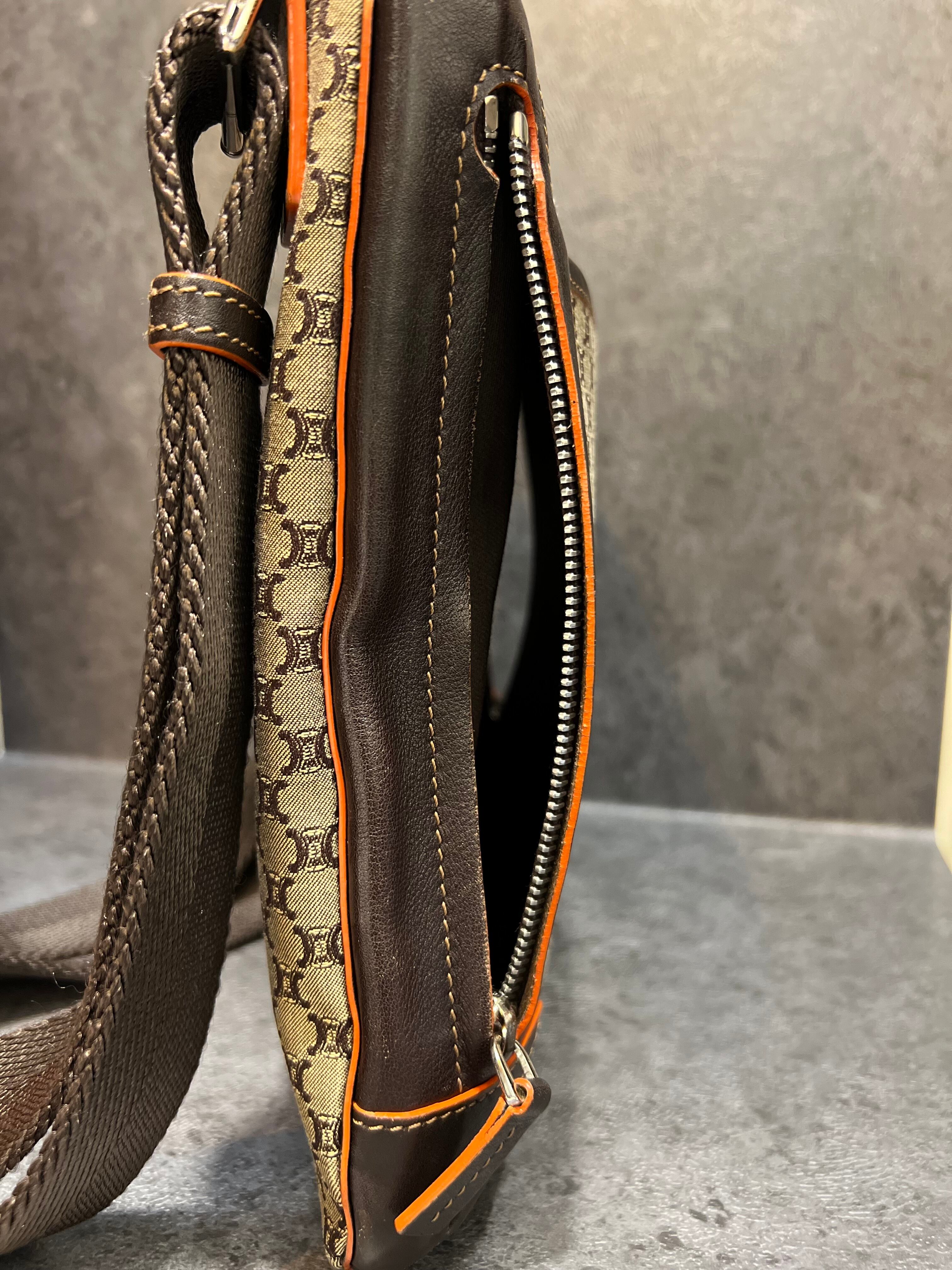 90年代のオールドセリーヌより、レザーとキャンバスのミックスショルダーバッグをご紹介いたします。