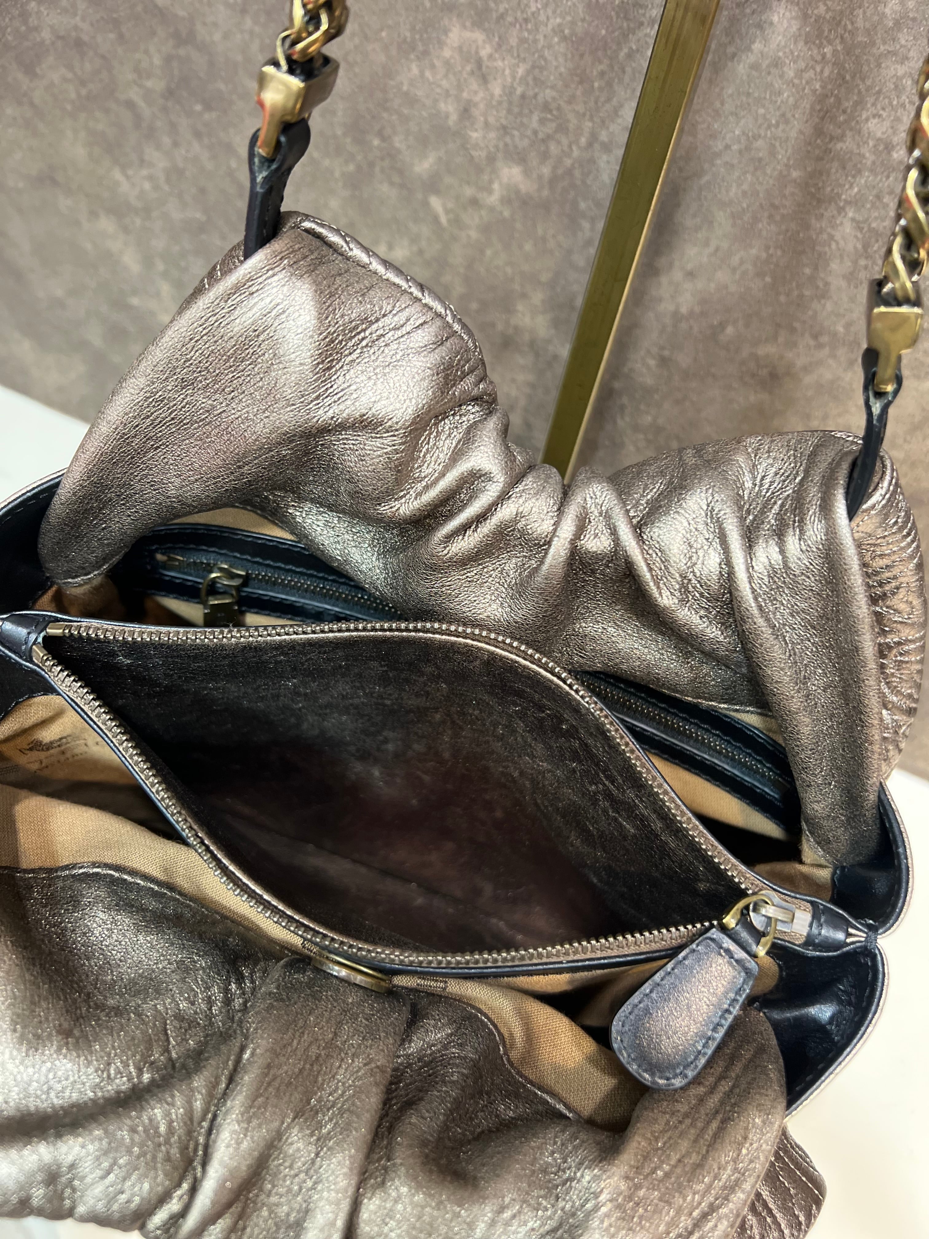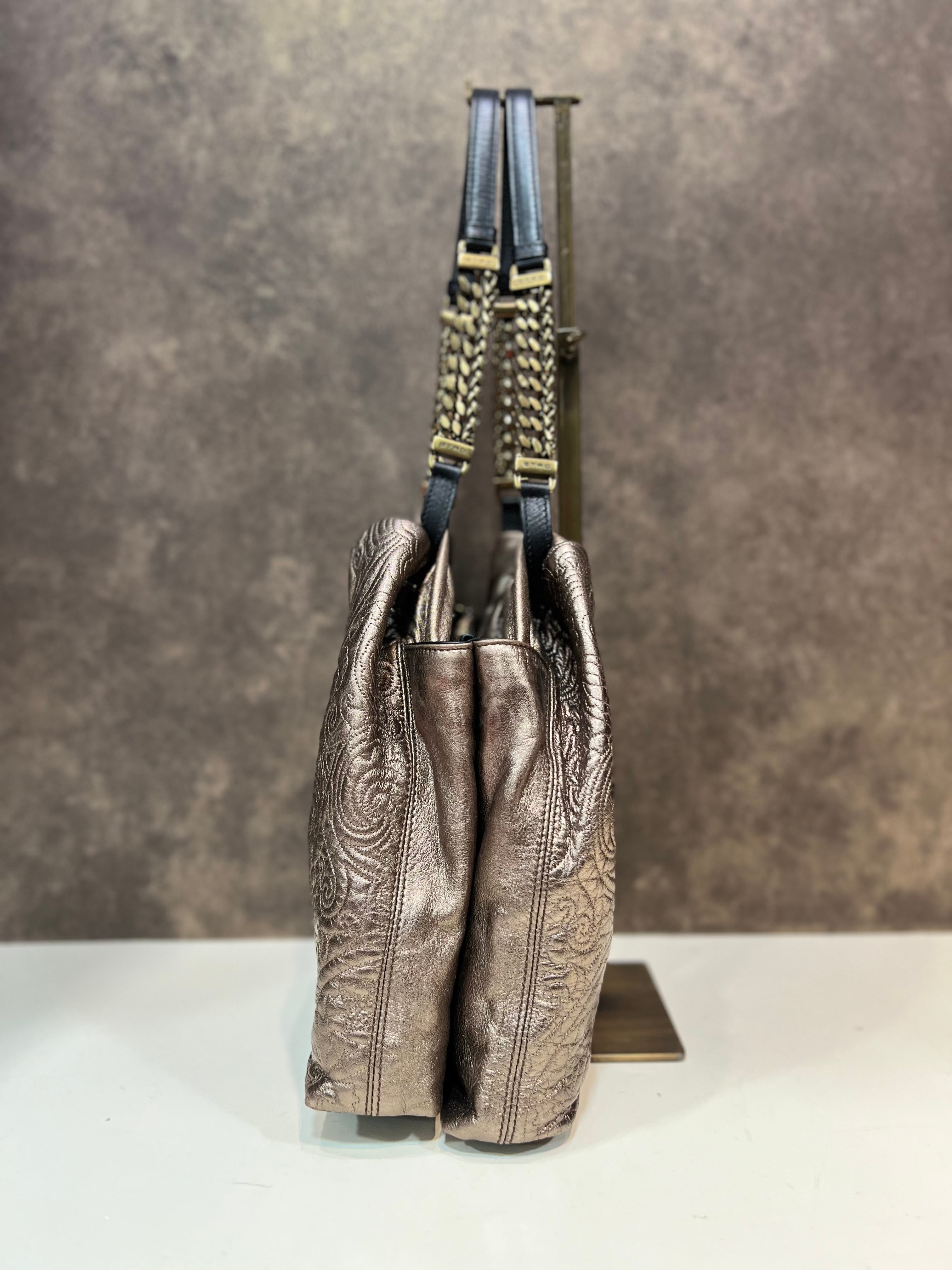 エトロより、光沢のあるブロンズコーティングのトート風ショルダーバッグをご紹介します。