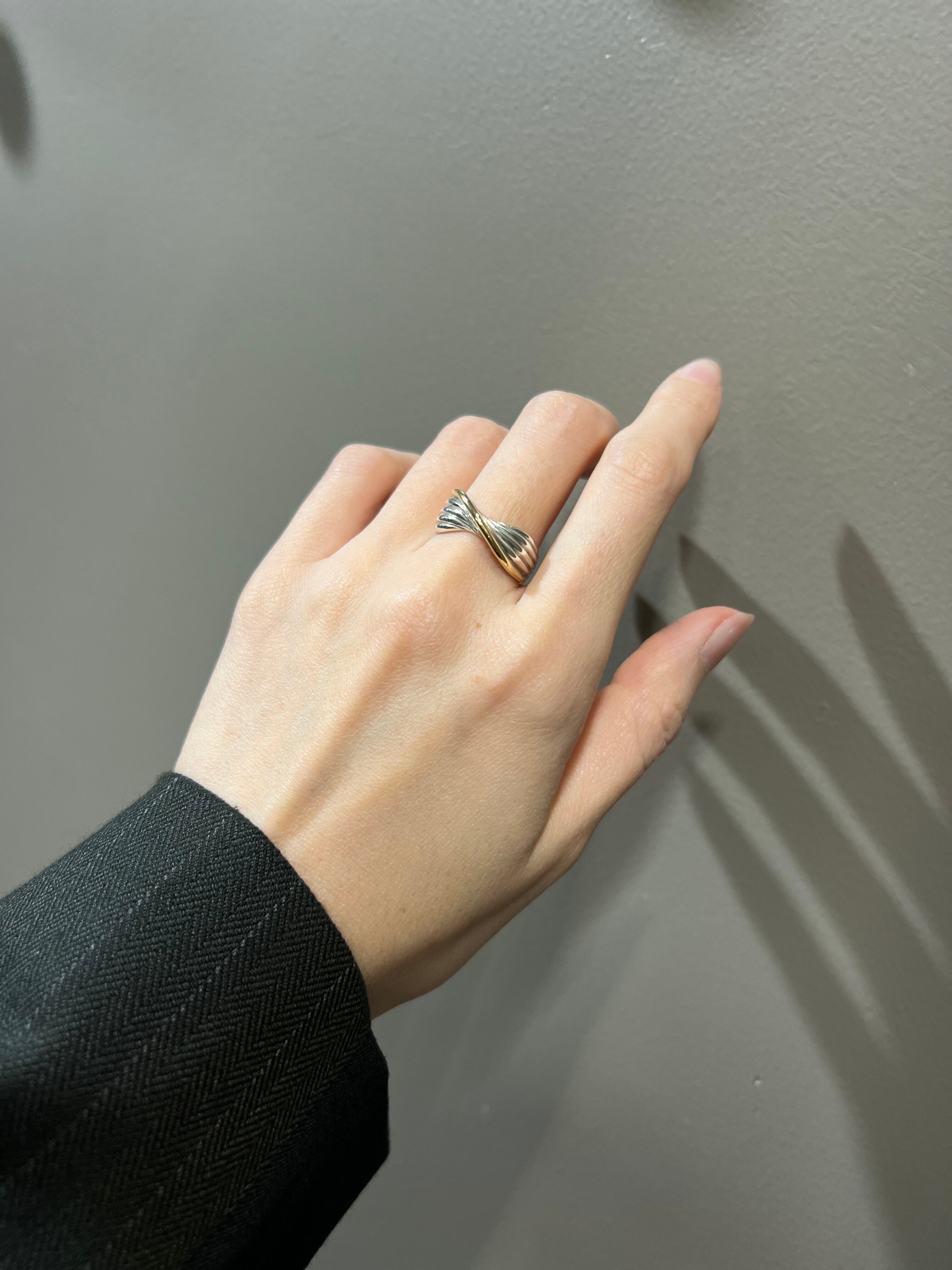イタリアのラグジュアリーブランド「バレンティノ」より、ツイストされたデザインにゴールドラインが光るシルバーリングをご紹介します。
