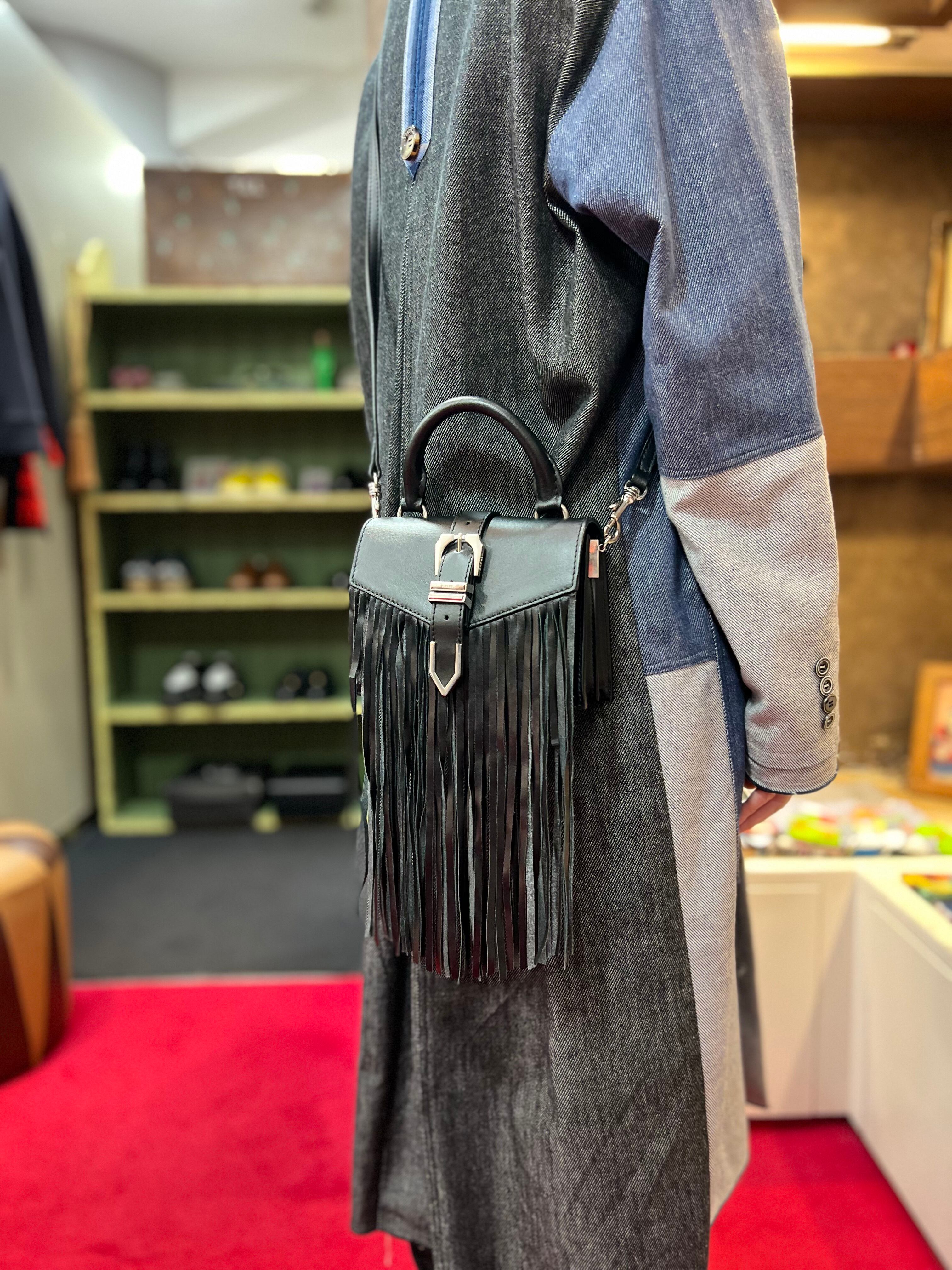 「VERSUS VERSACE」 black leather fringe western design bag