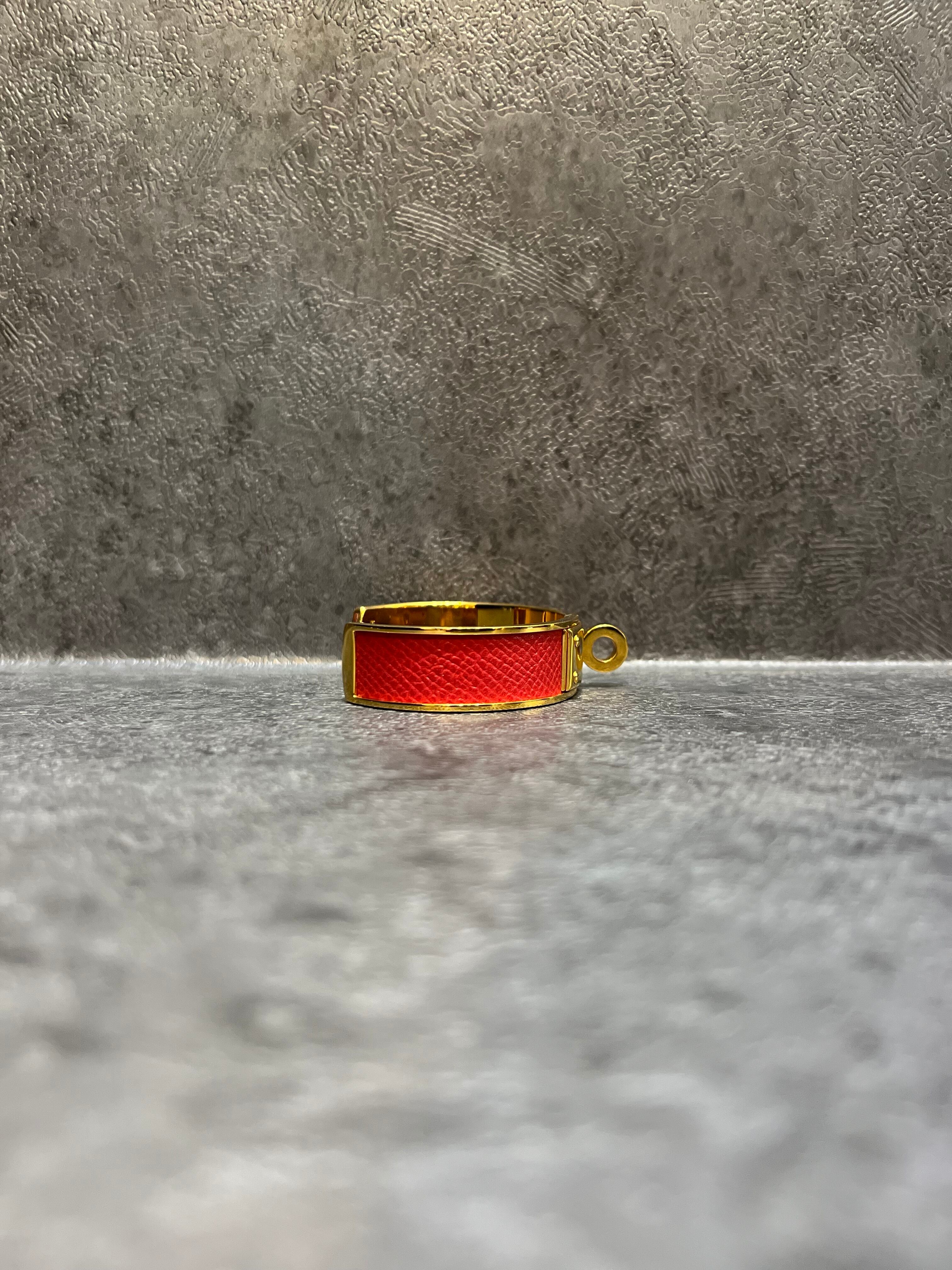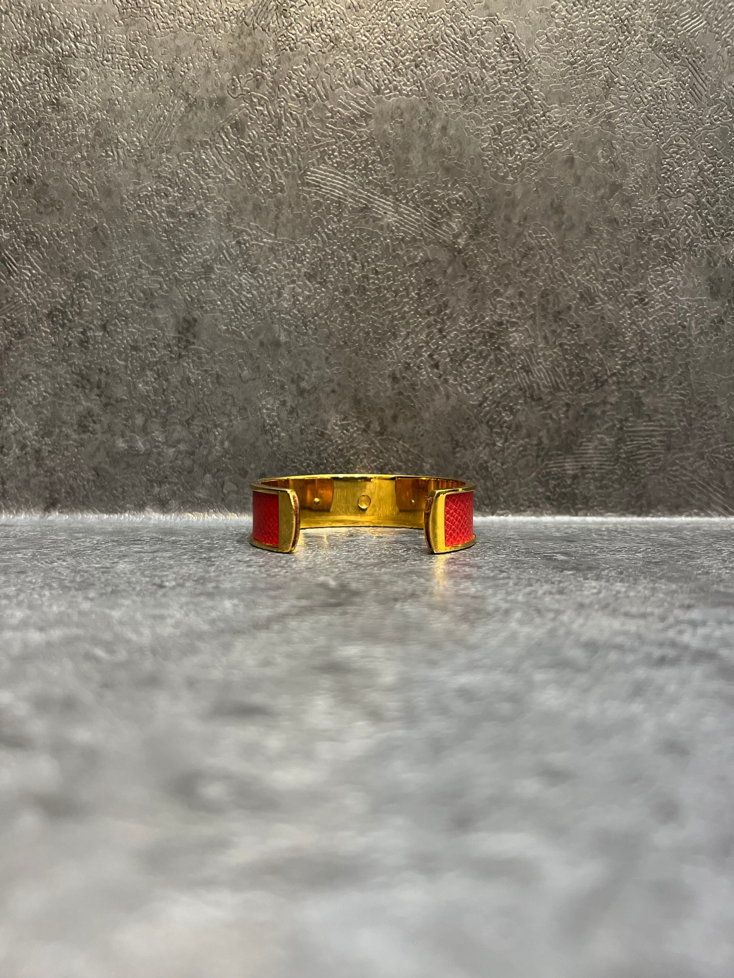 艶やかなゴールドプレーテッドメタルに、深みのあるレッドレザーを組み合わせたクラシカルな配色。