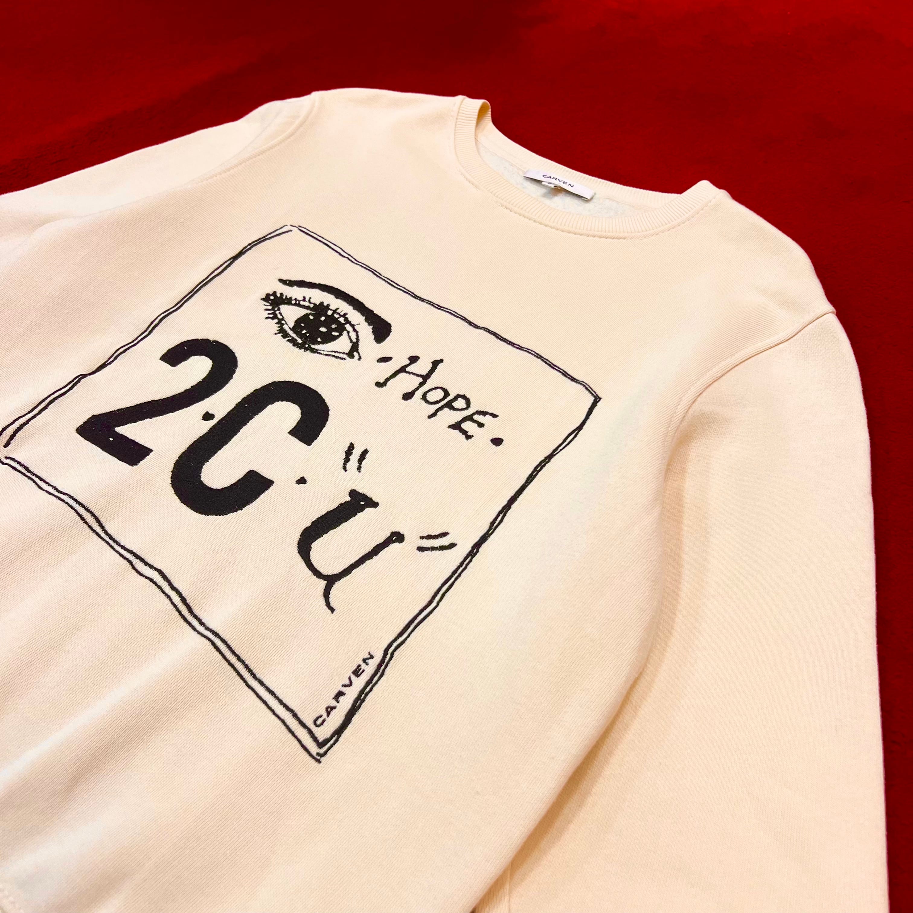 カルヴェンより、柔らかい印象のアイボリーベースのスウェットをご紹介します。