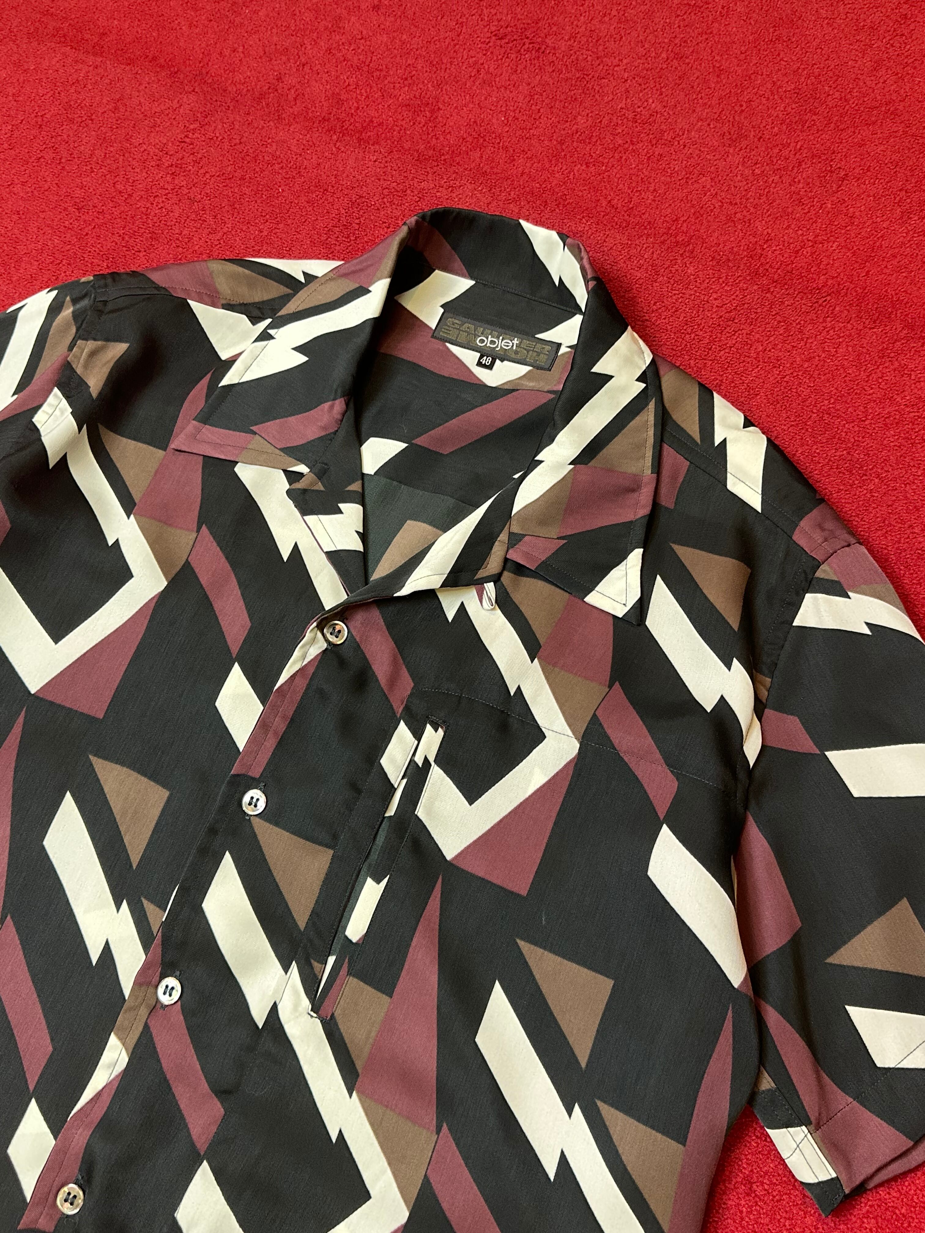 オープンカラーで、やや細身のボックシルエットのボーリングシャツ型。