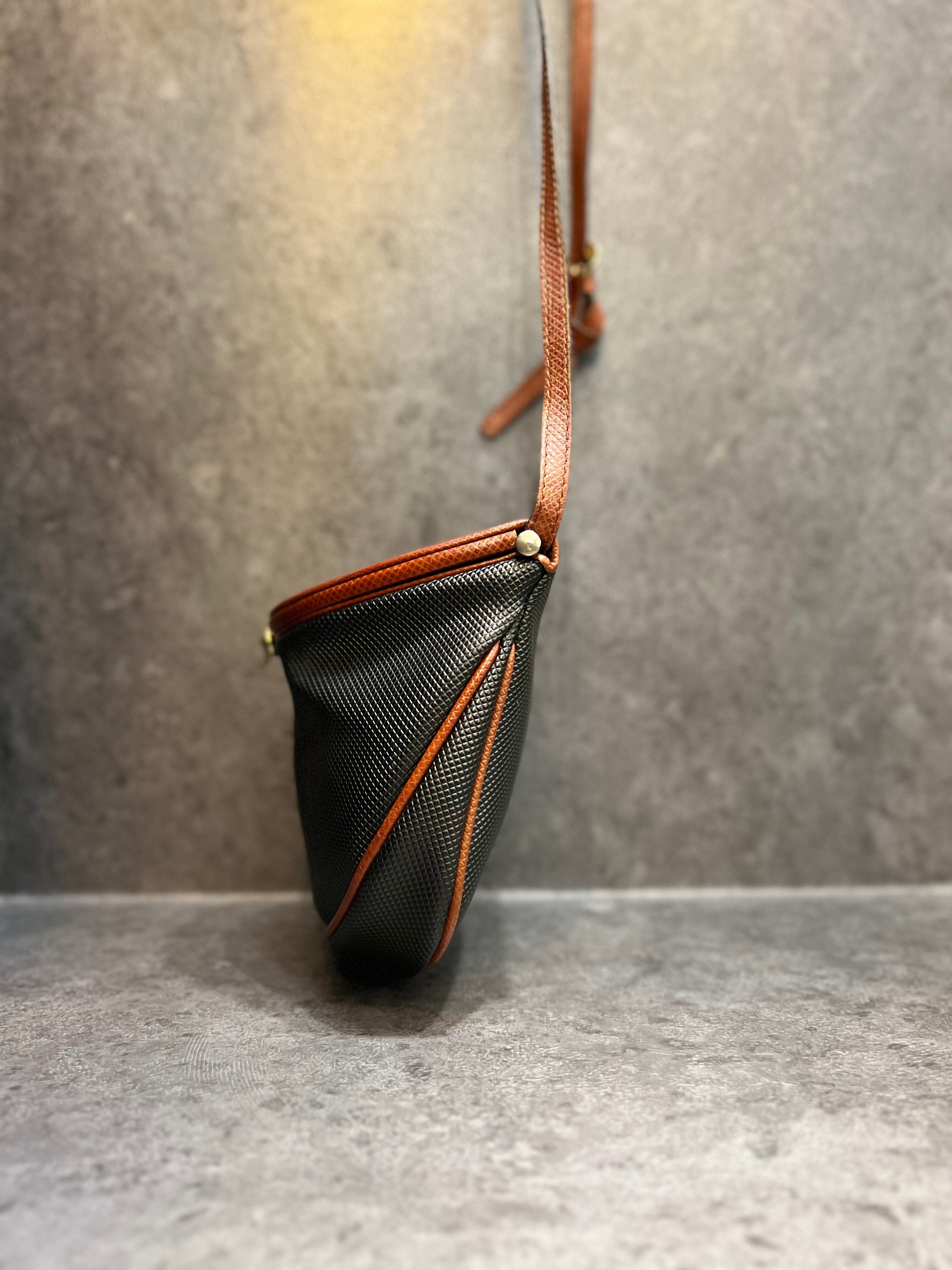 小さめなバッグはスクエアがトレンドですが、立体感のある一際目を惹くヴィンテージならではのデザインバッグ。