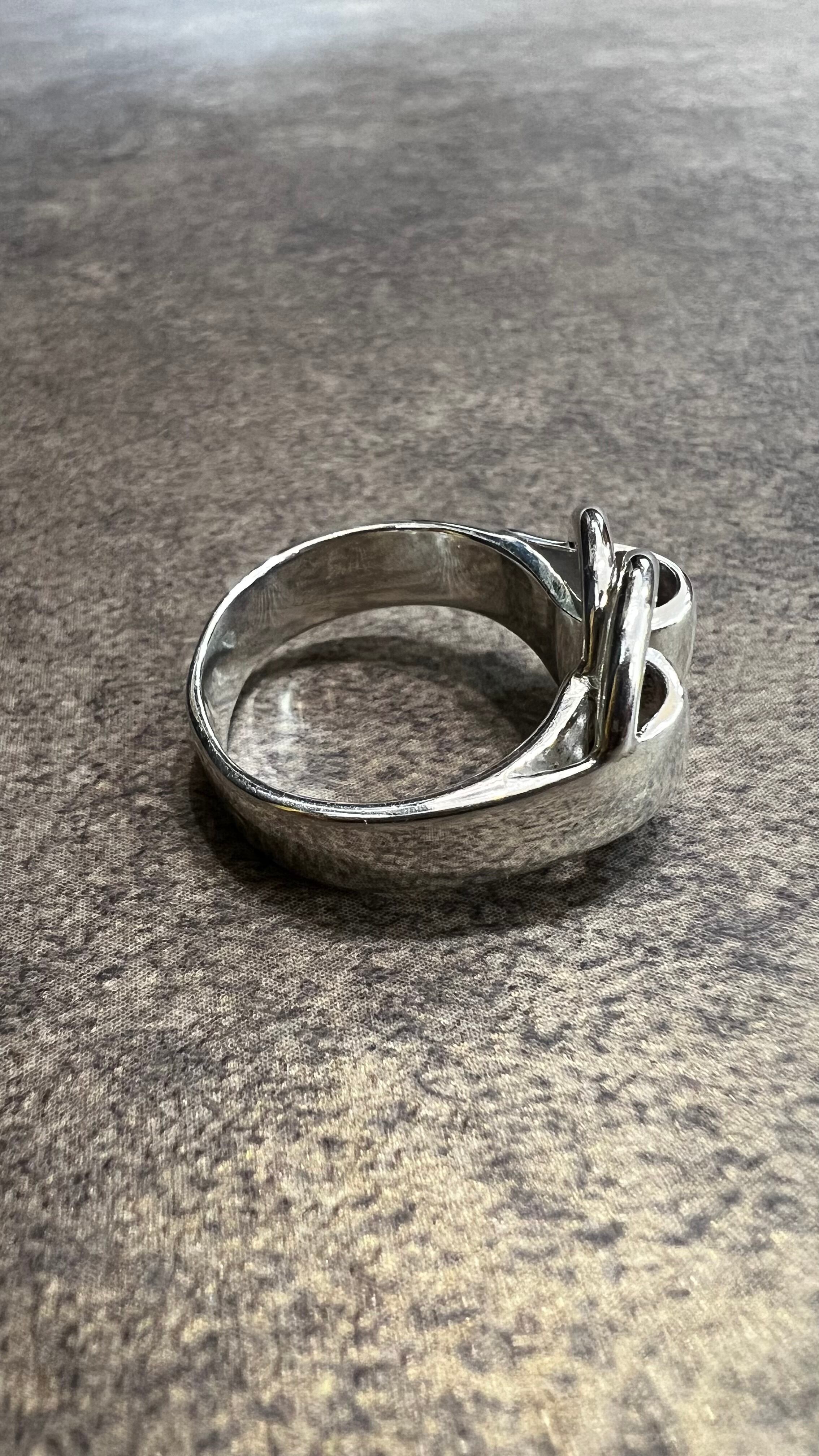 リボンと二重の輪がシンプルながらに洗練された高級感のあるデザインです。