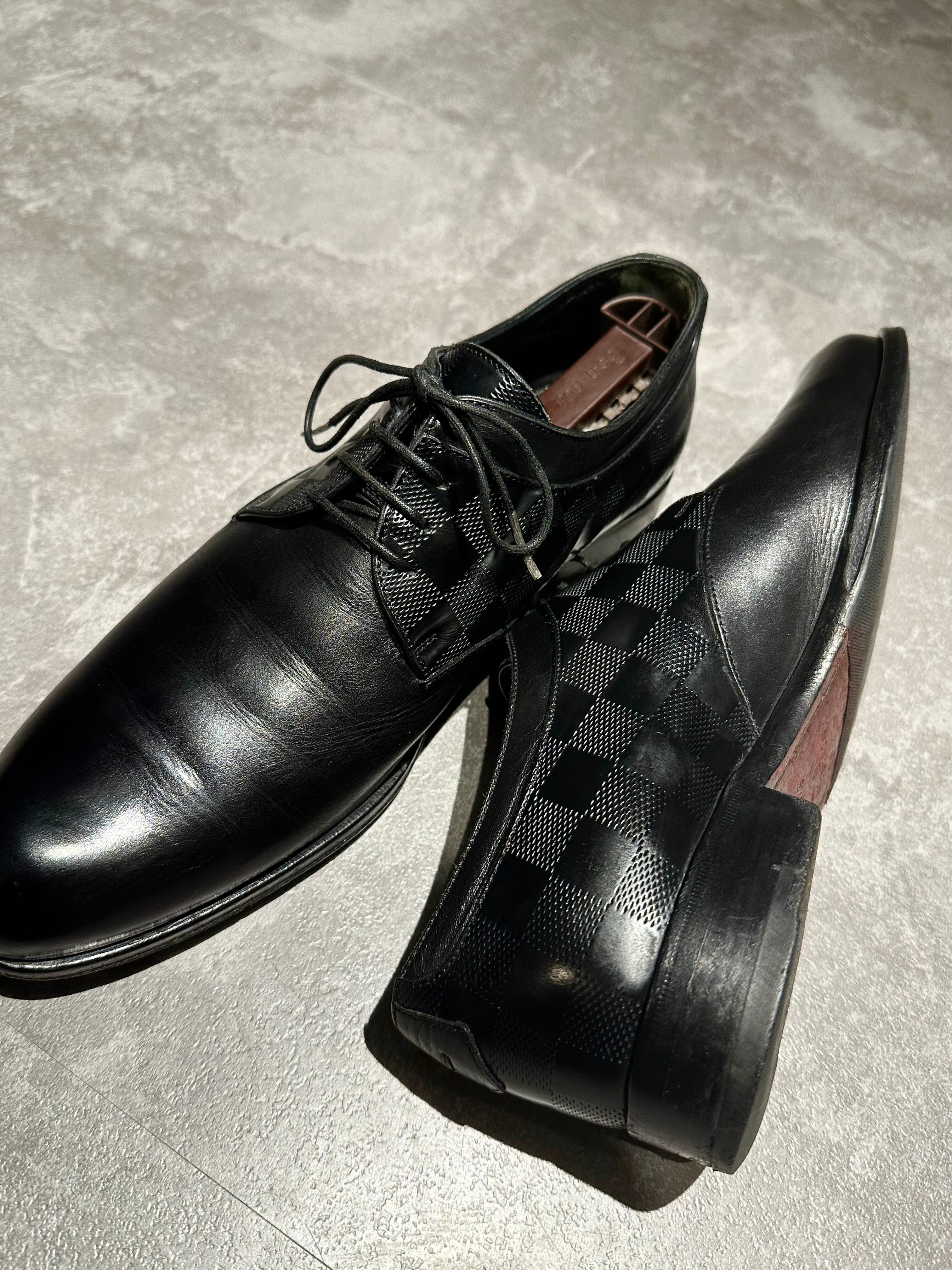 「LOUIS VUITTON」black leather damier pattern shoes