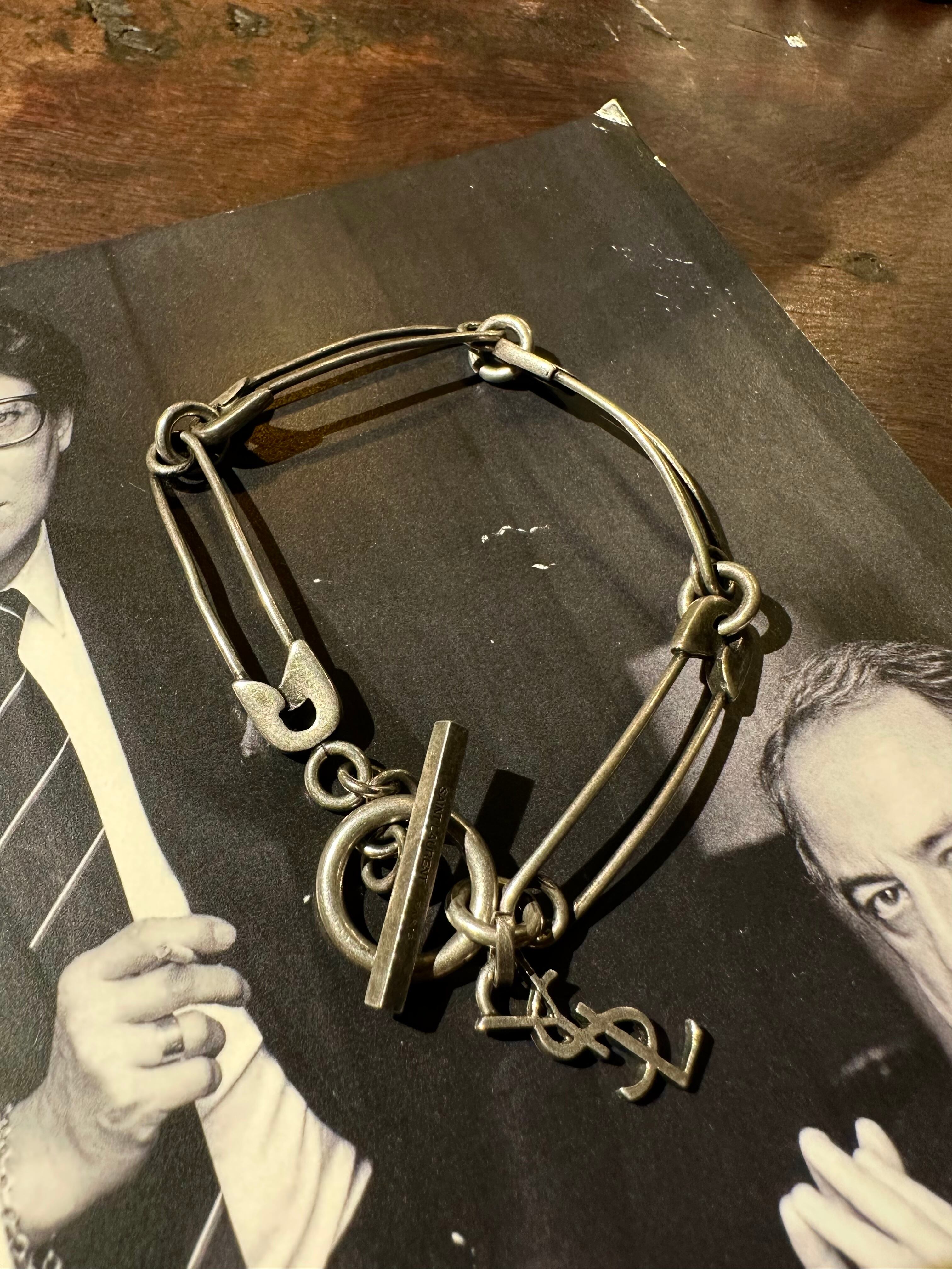 Yves saint Laurentより、安全ピンが連なったシルバーブレスレットをご紹介。