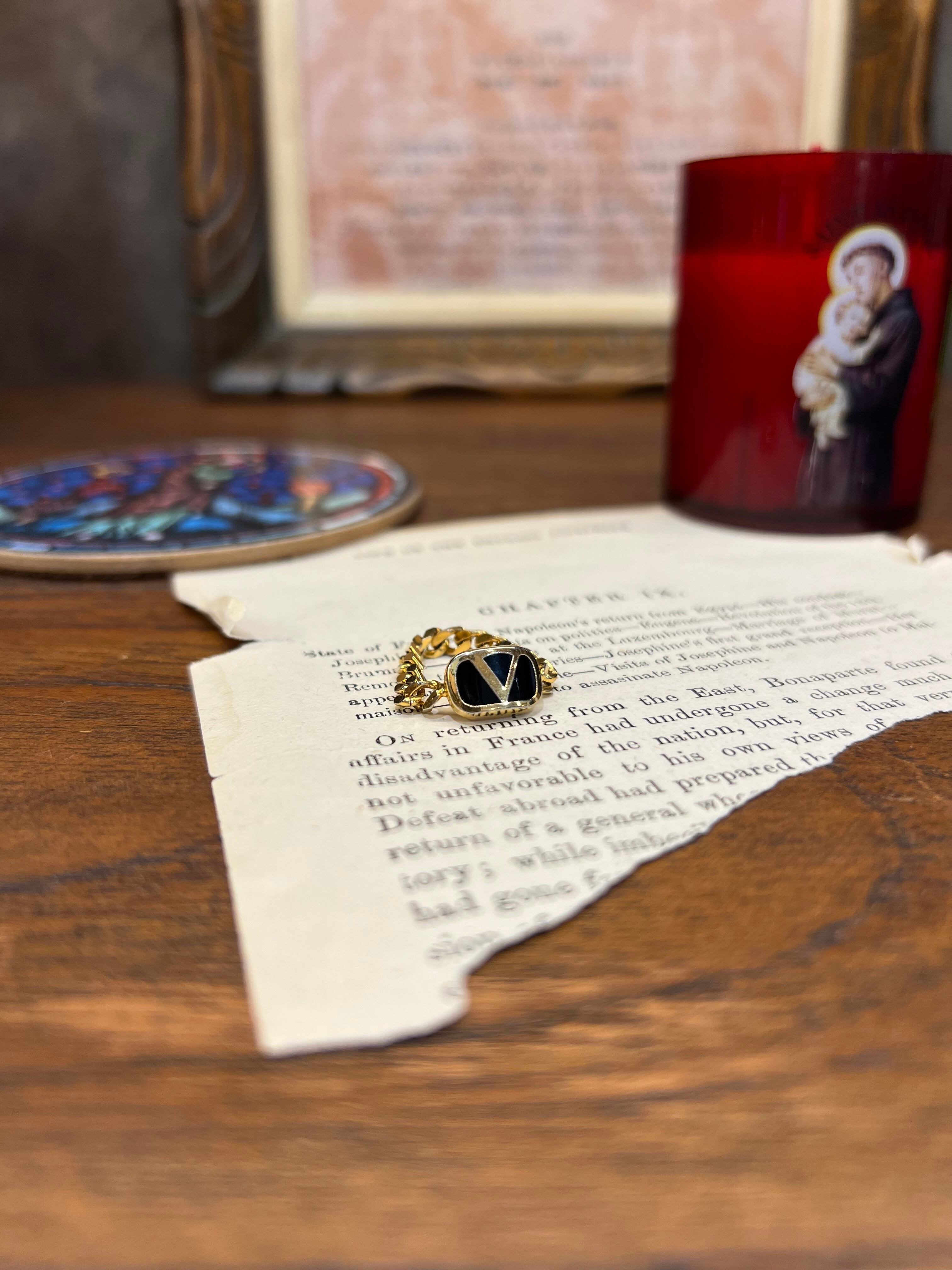 VALENTINOより、ロゴマークのプレートがクラシカルなチェーンリングをご紹介いたします。