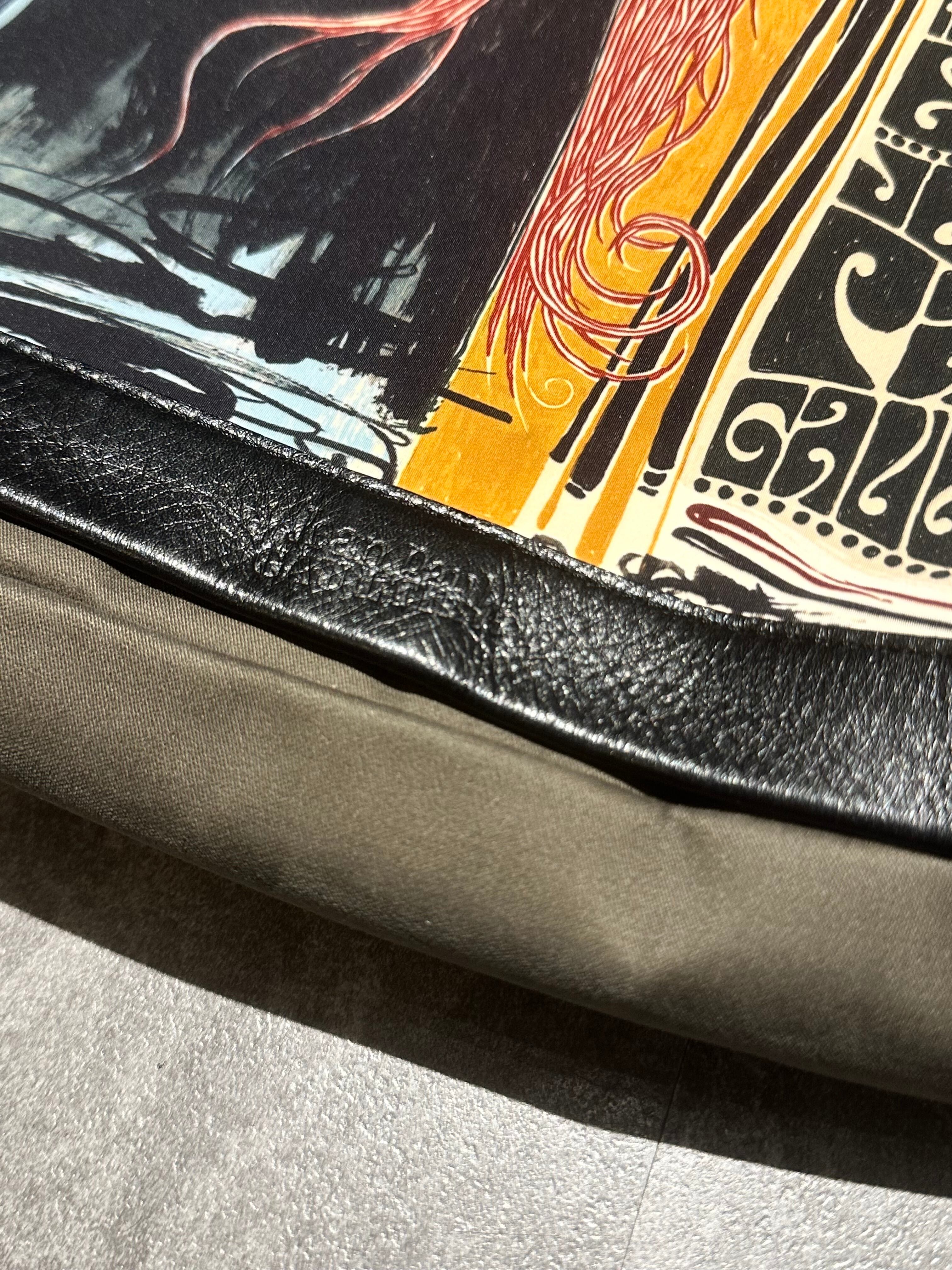 アートを背負っているようなデザインで、カジュアルにもモードにもコーディネートのワンポイントになってくれる逸品。