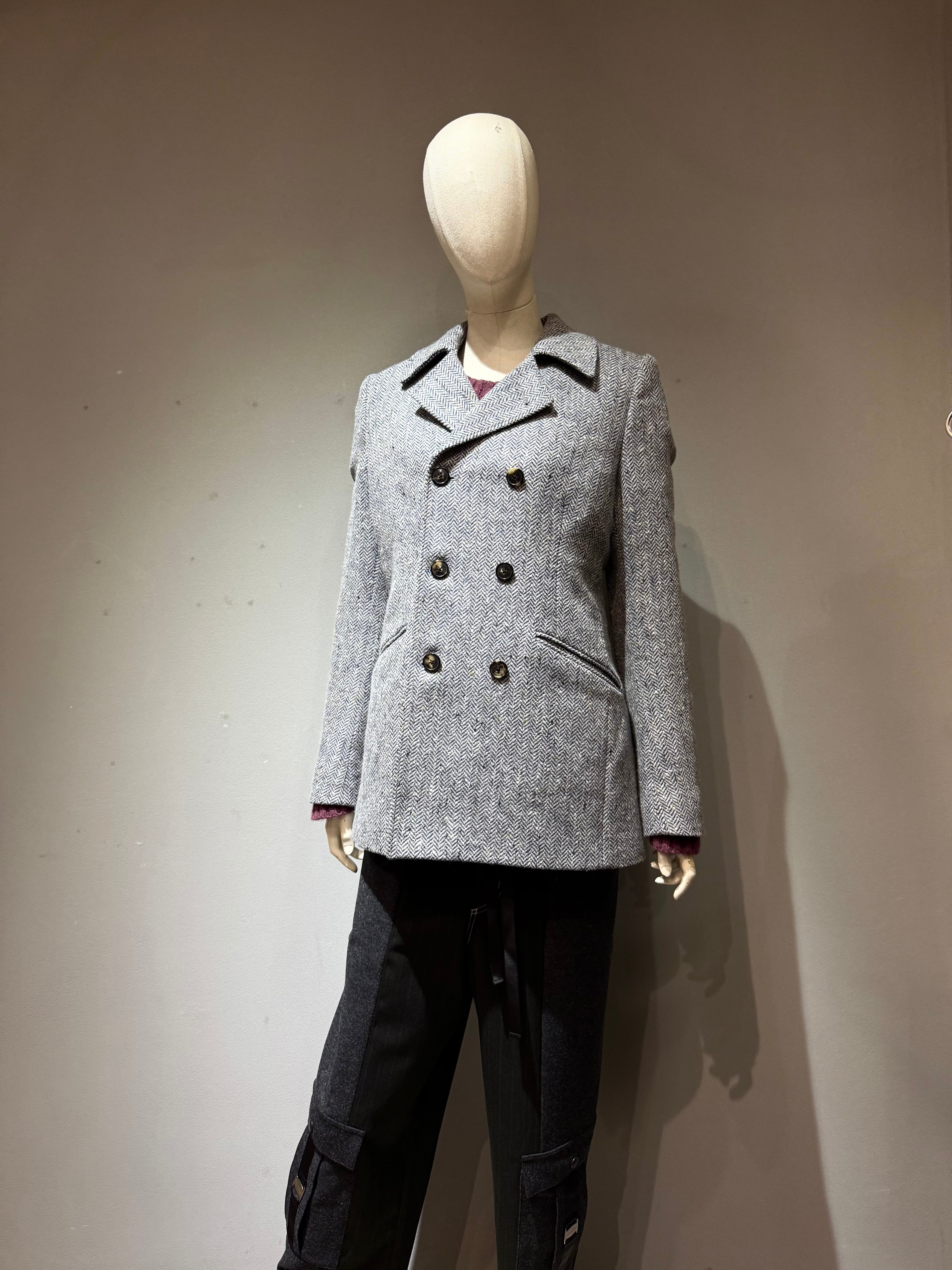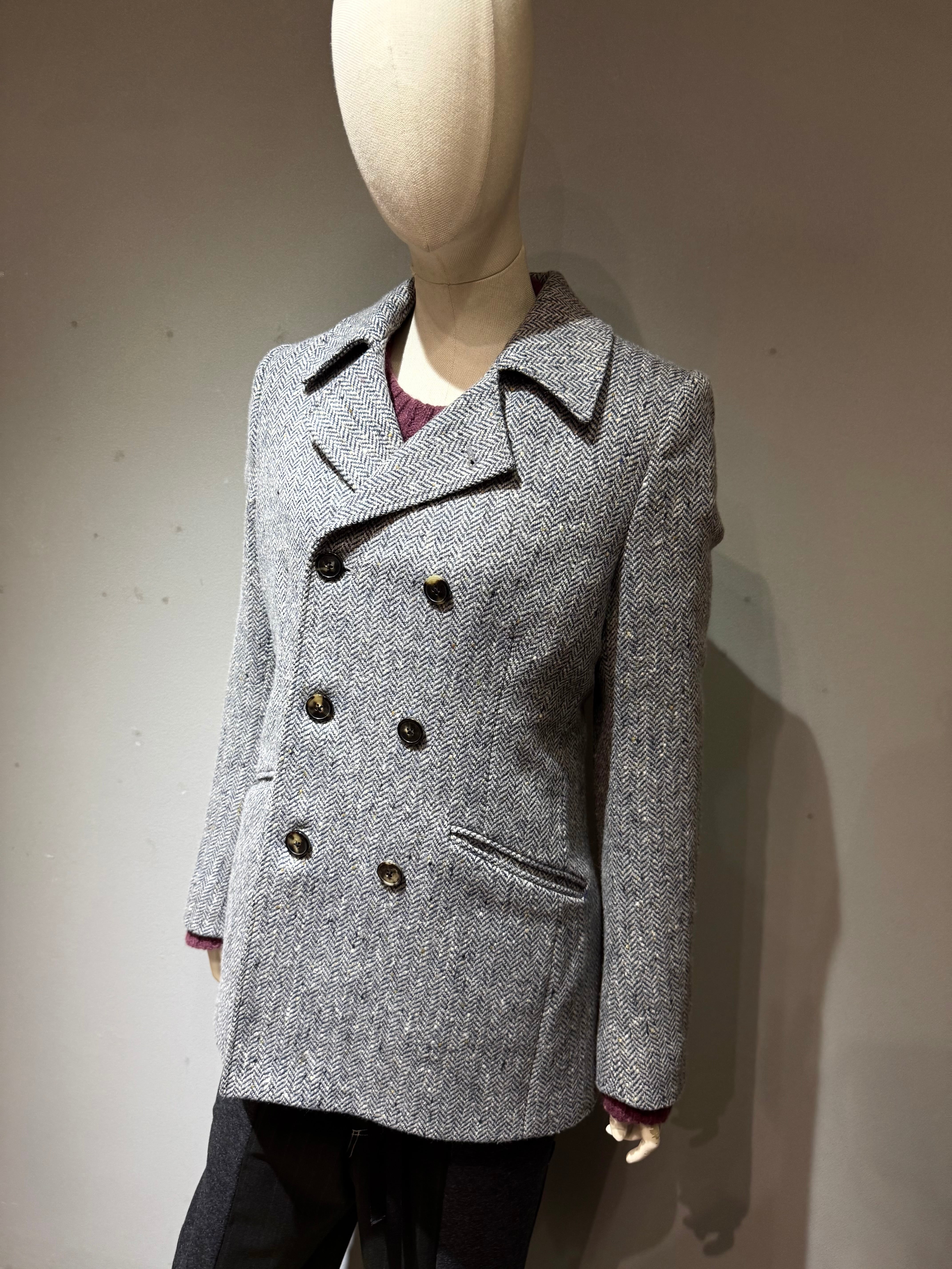 英国紳士を思わせるクラシカルな佇まいに、ドリスならではの美しいテーラリングが融合。袖山やラペルの構築、絞り込まれたウエストライン、絶妙なミドル丈など、すべてが計算し尽くされたシルエットはまさにラグジュアリーの極み。