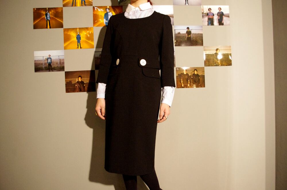 ウエスト周りに沢山入る切り替え・全体的に曲線のカッティングに拘ったアーティスティックなディテイル。