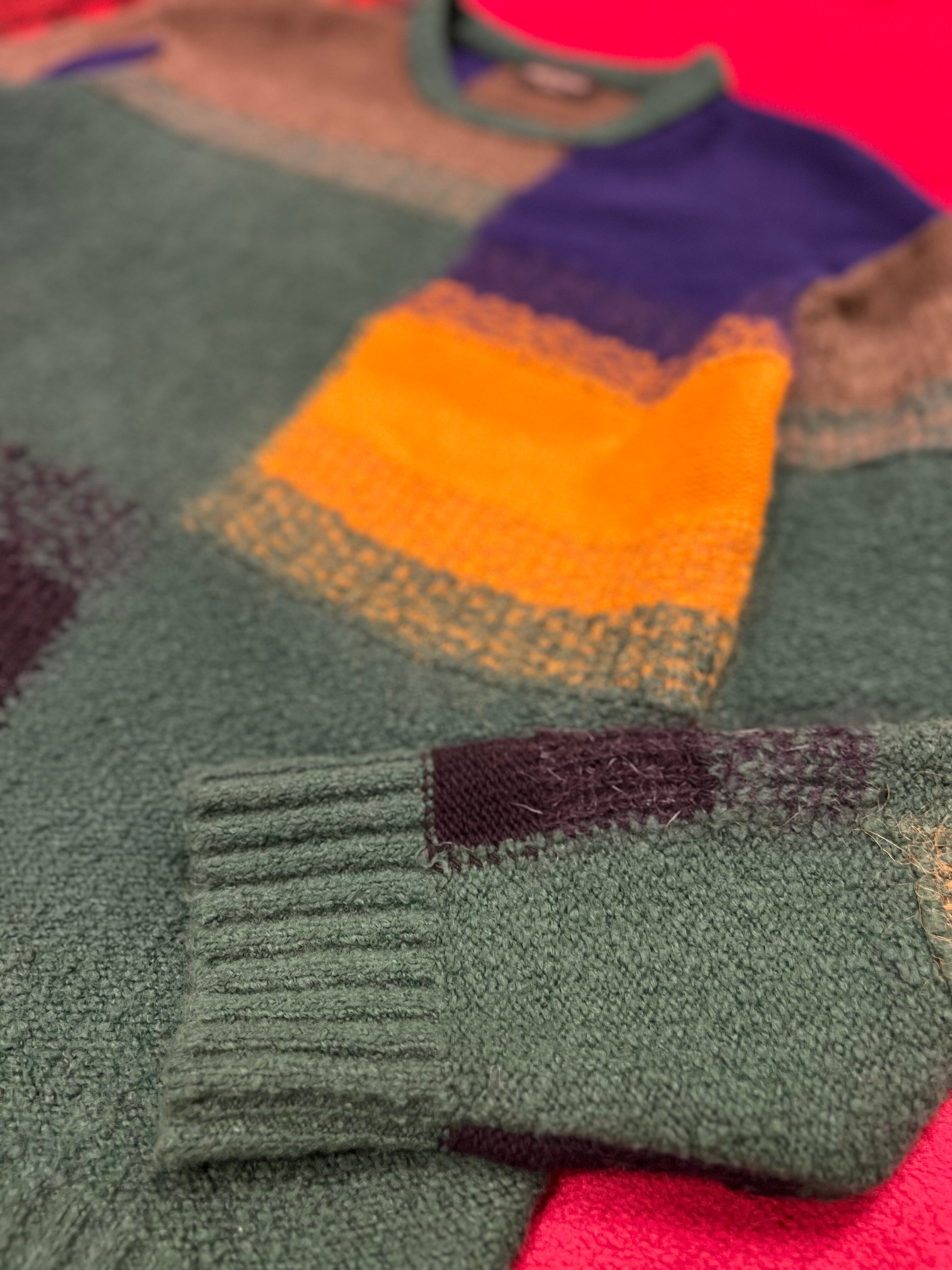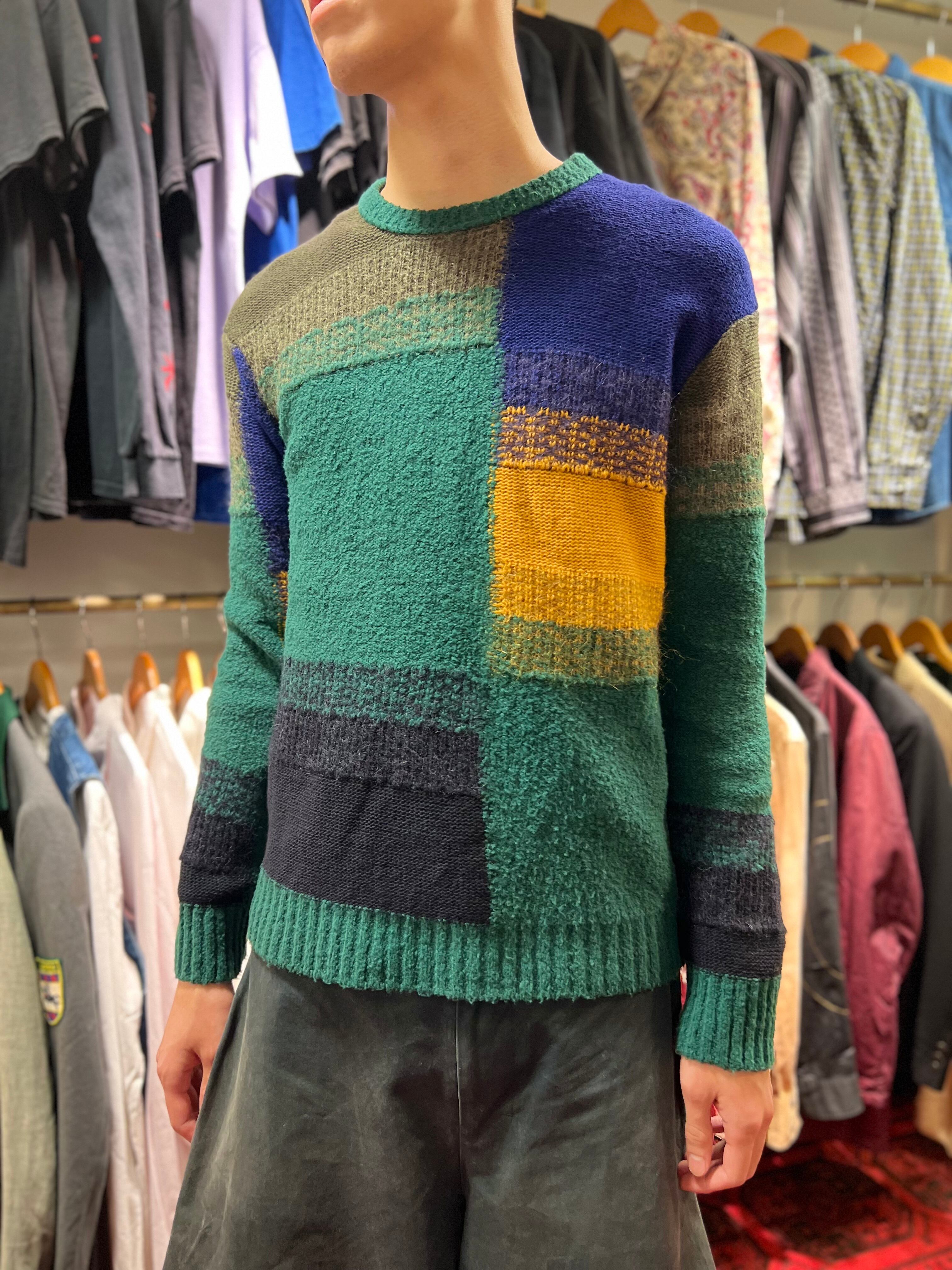 ウールとコットンをベースに、モヘアなどのふんわりとした素材感をプラスし、グリーン、イエロー、パープル、更にブラックと5色のバランスの取れた絶妙なカラーリング。