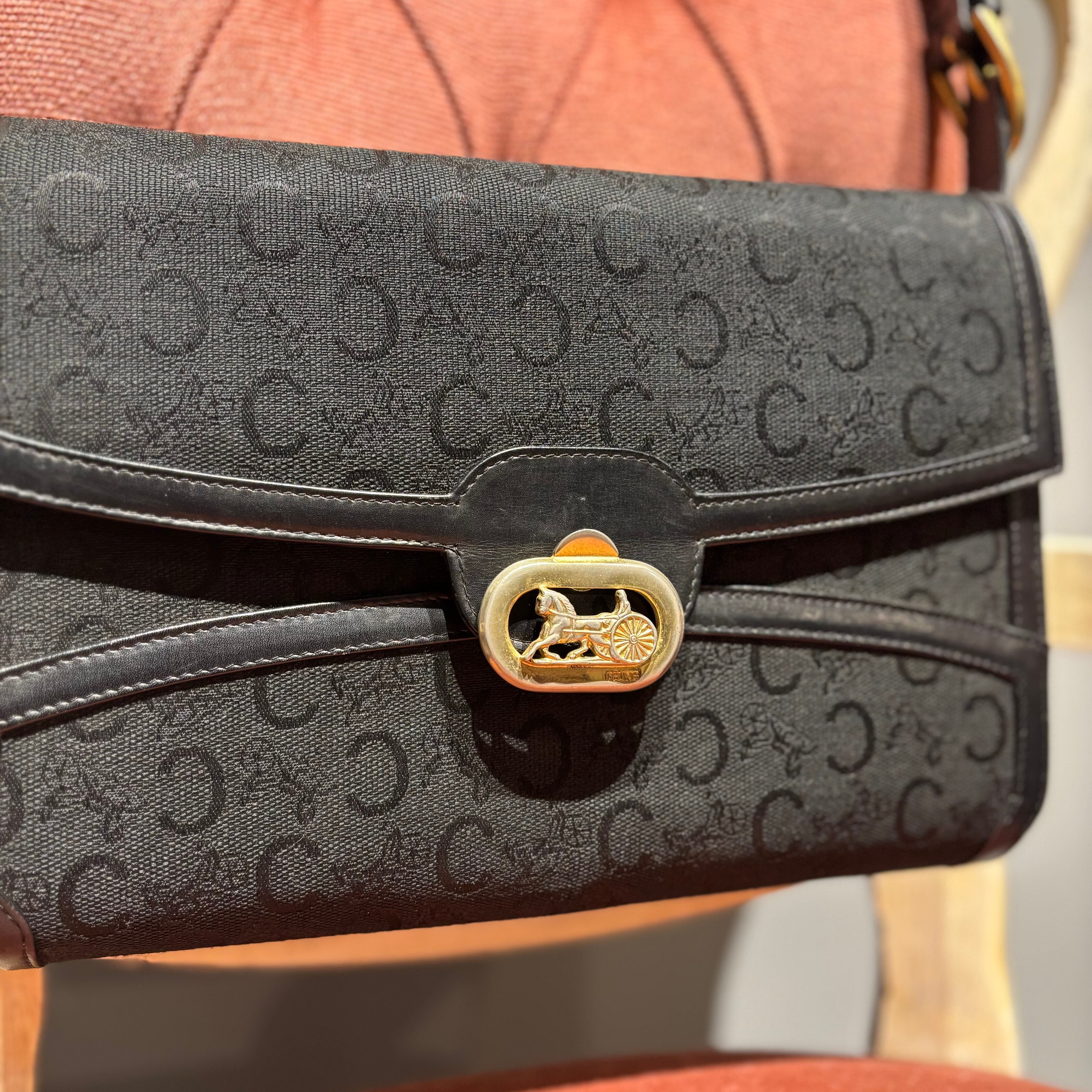 OLD CELINEより、ブラックにゴールドのロゴがよく映えるCマカダム柄のバッグをご紹介。